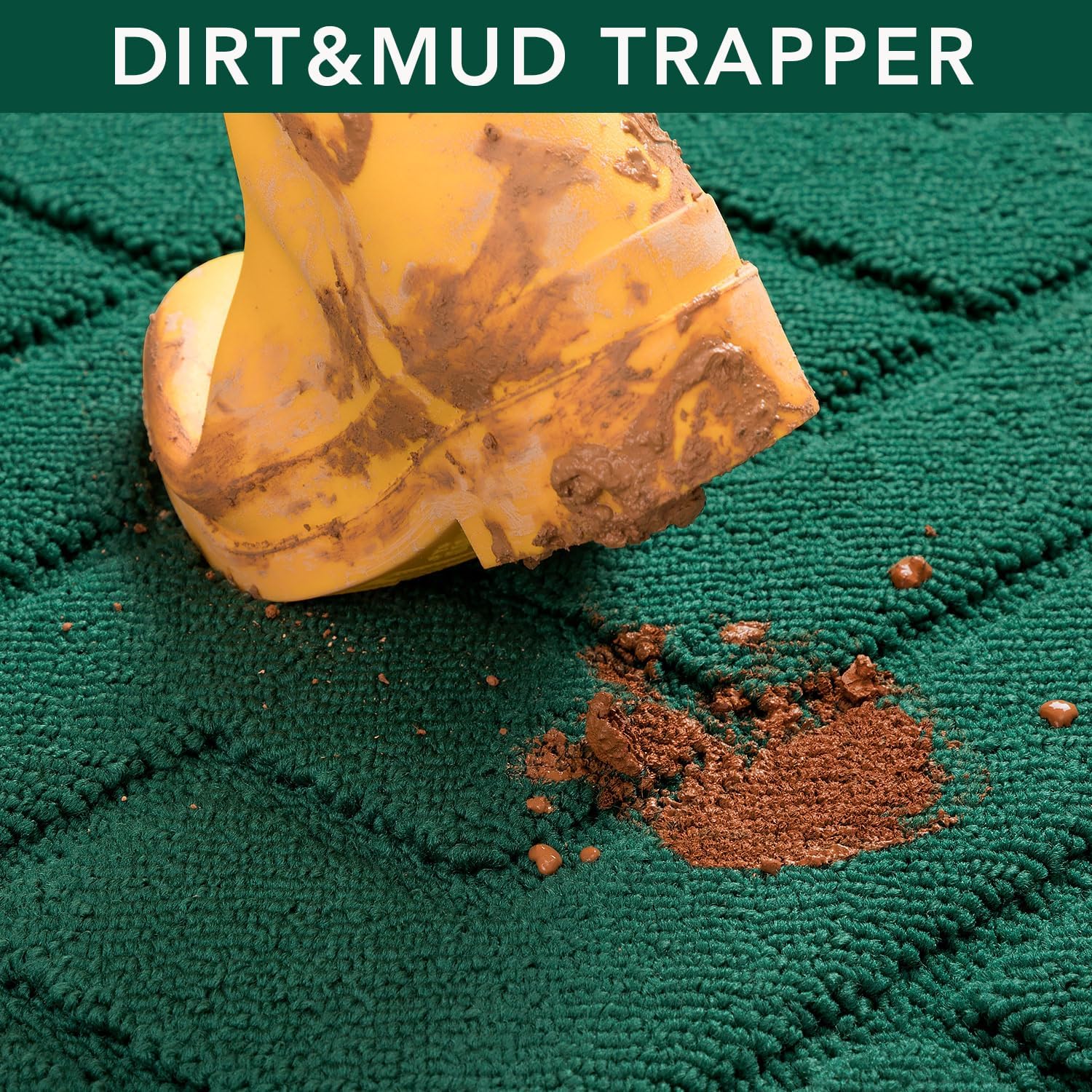 hicorfe Front Door Mat Outside Entrance,20"x31.5" Absorbent Muddy Dirt Resist Welcome Door Mats Outdoor Indoor,Stain and Fade Resistant,Non Slip Backing Entry Mat Doormat for Entryway(Evergreen)