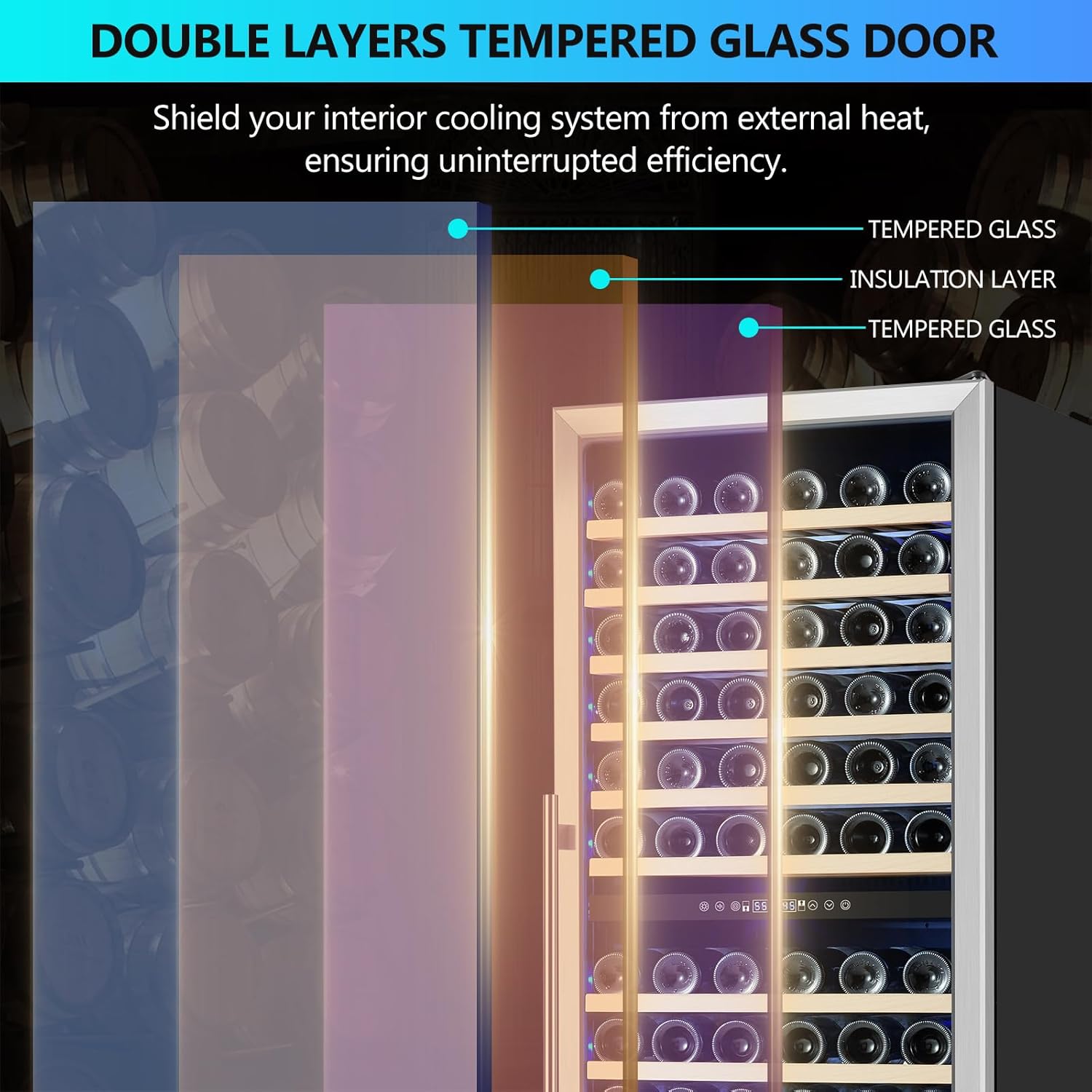 Dual Zone Wine Fridge Freestanding 175 Bottle, 24 Inch Large Capacity Built-in Wine Cooler Refrigerator with Upgraded Compressor Cooling and Intelligent Temperature Memory