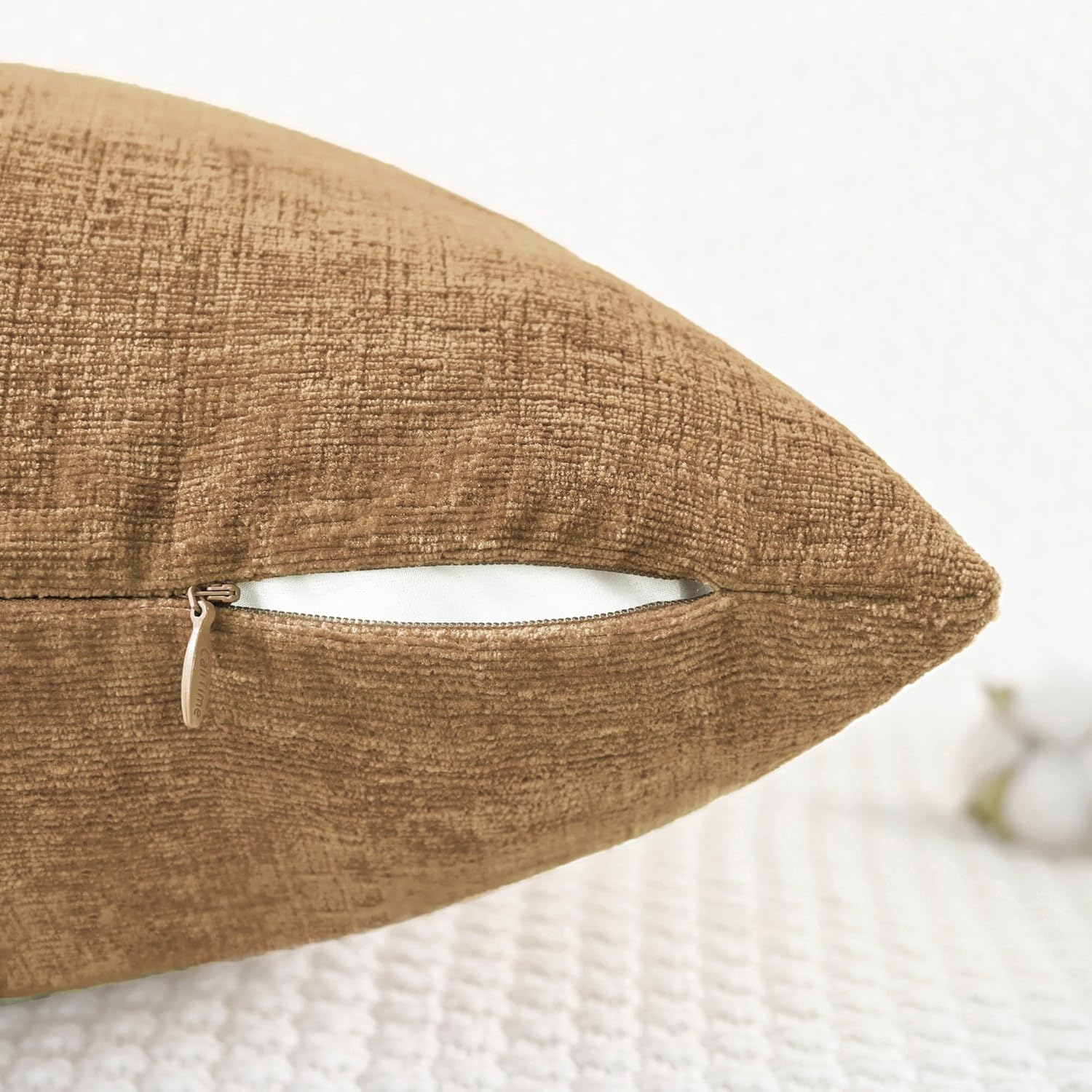 CaliTime Throw Pillow Covers Decorative 12 X 20 Inches Pack of 2 Cozy Chenille Cushion Cases for Couch Sofa Bed Living Room Home Apricot Brown