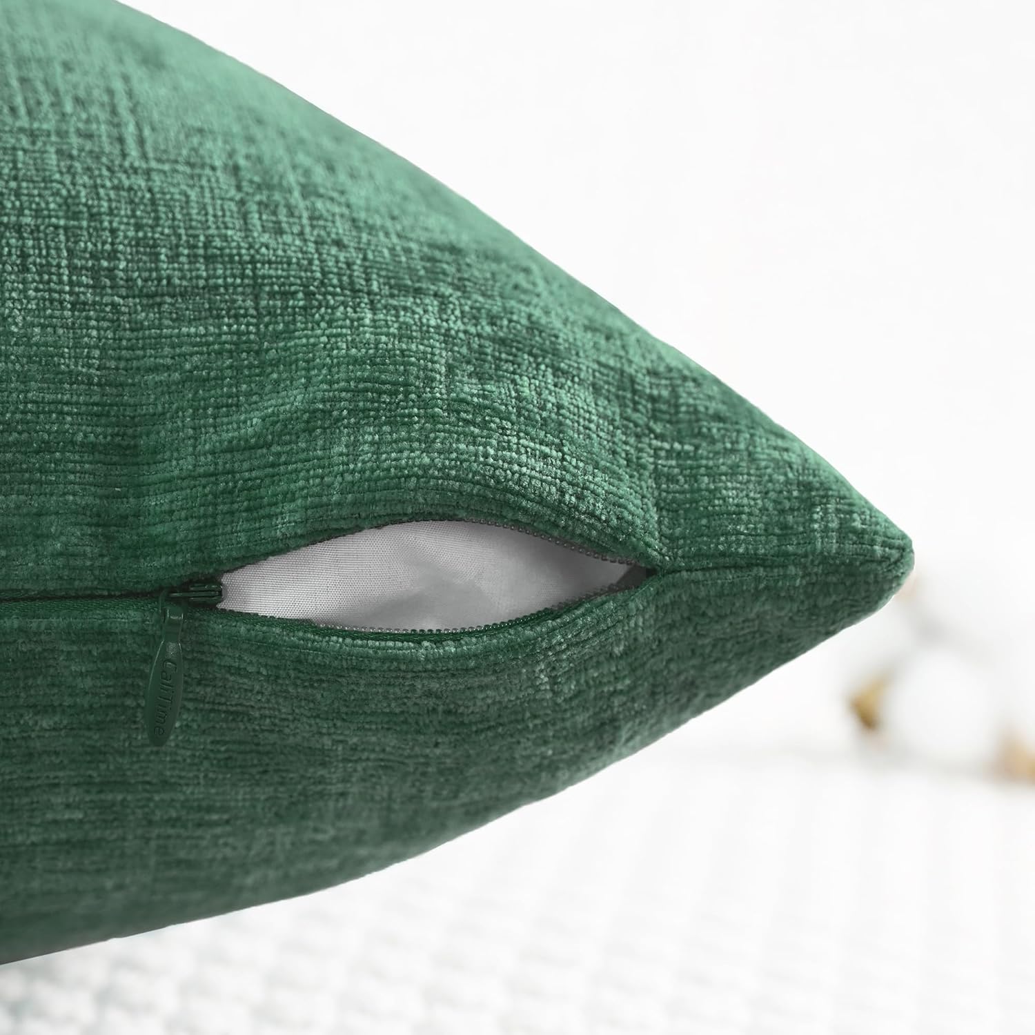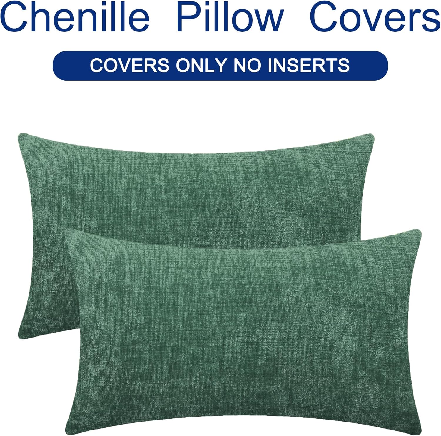 CaliTime Throw Pillow Covers Decorative 16 X 26 Inches Pack of 2 Cozy Chenille Cushion Cases for Couch Sofa Bed Living Room Home Dark Green