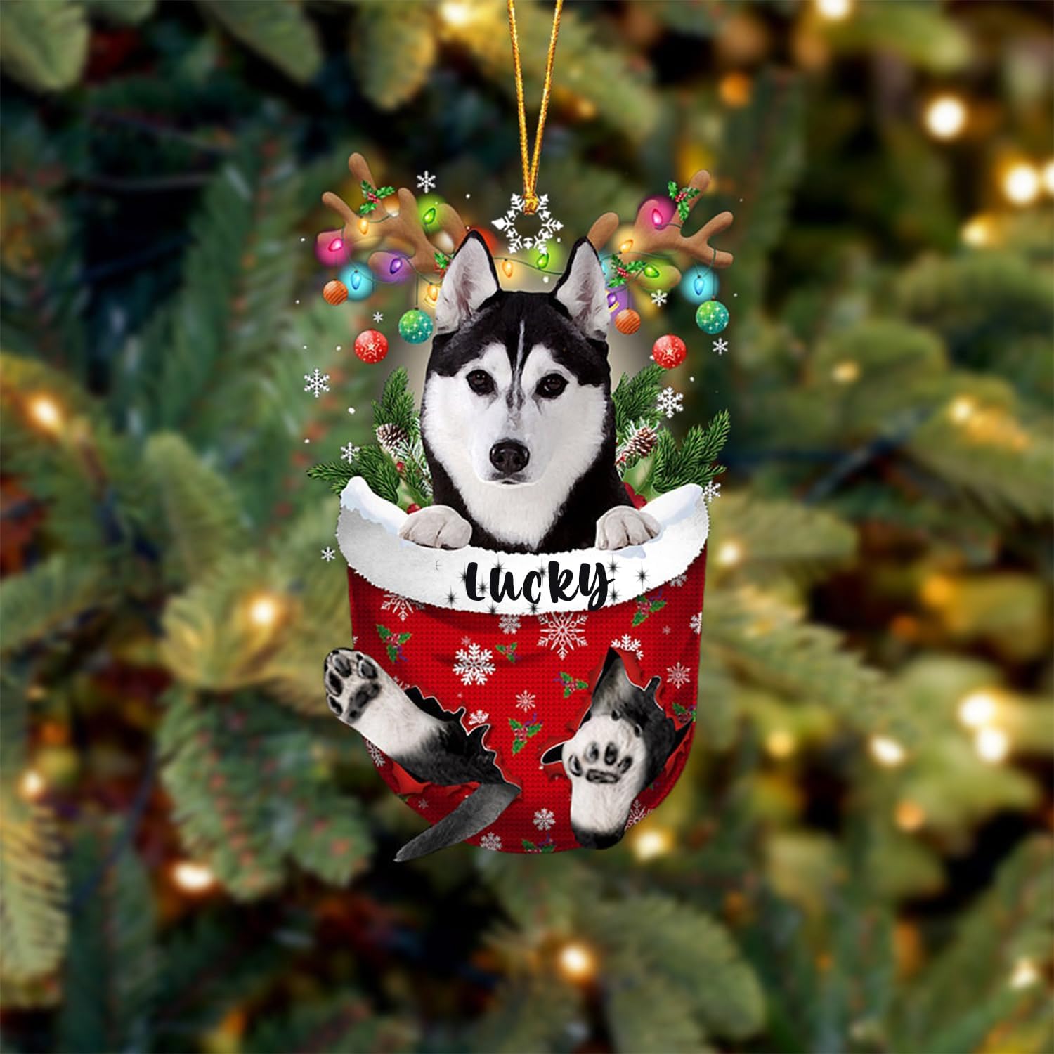 Husky Dog Christmas Ornament, Husky in Snow Pocket Christmas Tree Ornament, Dog Lovers Gift Idea Xmas Decor, Christmas Decorations for Tree, Christmas Ornament Gift for Dog Lovers