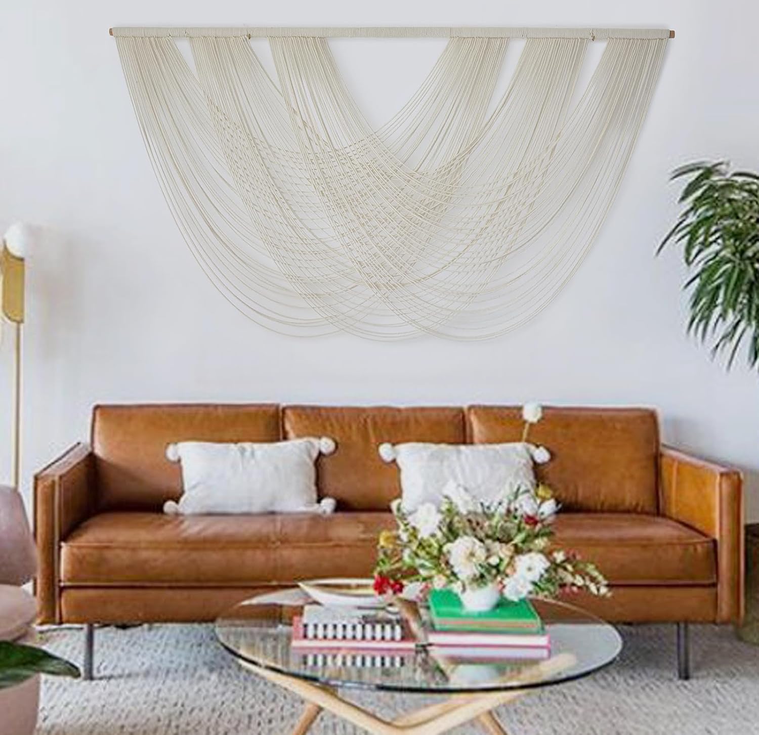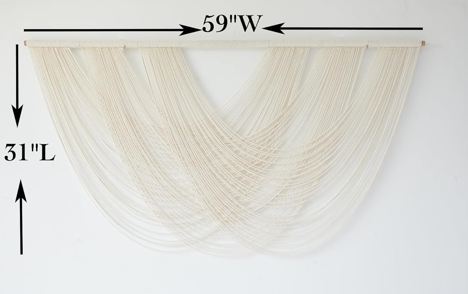 - Material: 100% Cotton macrame cord Dimensions: Size:57"W x 31"L- white large macrame wall hanging