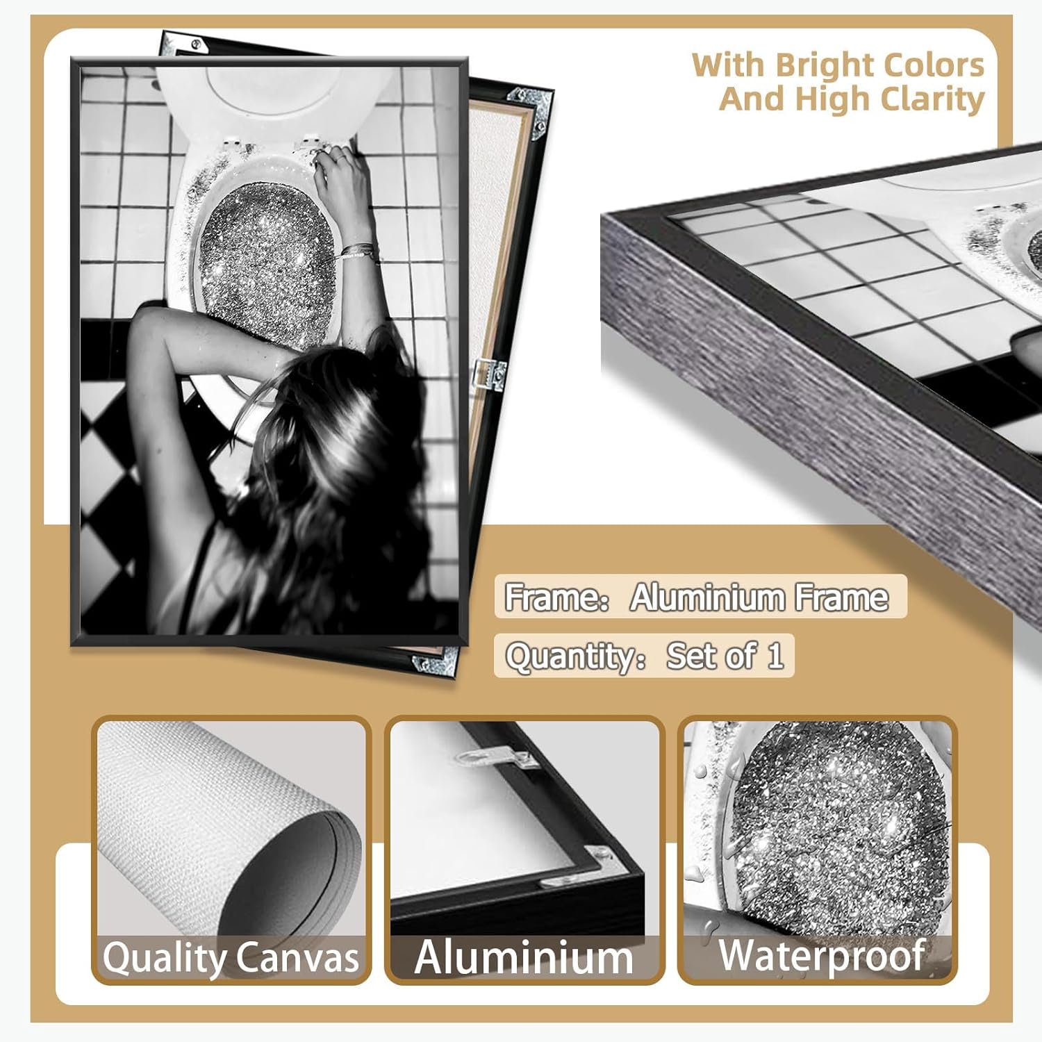 Funny Bathroom Wall Art Black and White posters Bar Disco Party prints painting Girls Bathroom Canvas wall art Funky aesthetics Teen Girl Bedroom wall decor for 24x36in Framed