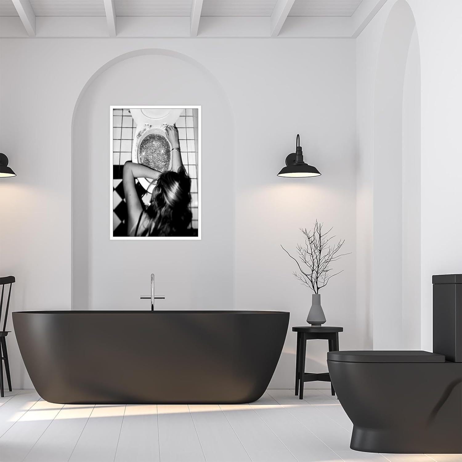 Liyark Funny Bathroom Wall Art Black and White posters Bar Disco Party prints painting Girls Bathroom Canvas wall art Funky aesthetics Teen Girl Bedroom wall decor for 24x36in Unframed