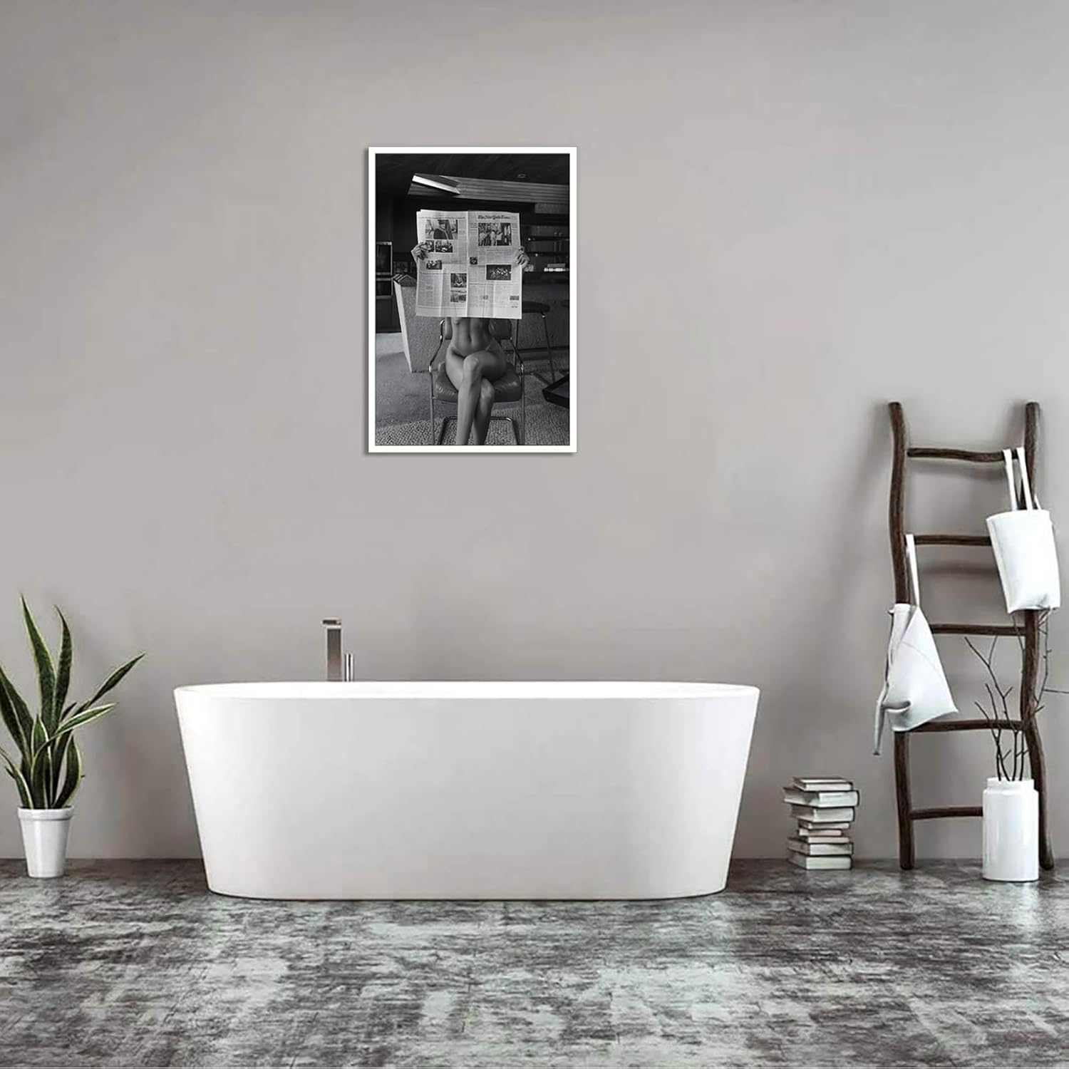 Liyark Sexy Glamorous Reader Poster Feminist Art Black and White Preppy Canvas wall art Retro Room Aesthetic Newspaper prints painting Trendy Naked Women Art wall decor 12x16in Unframed