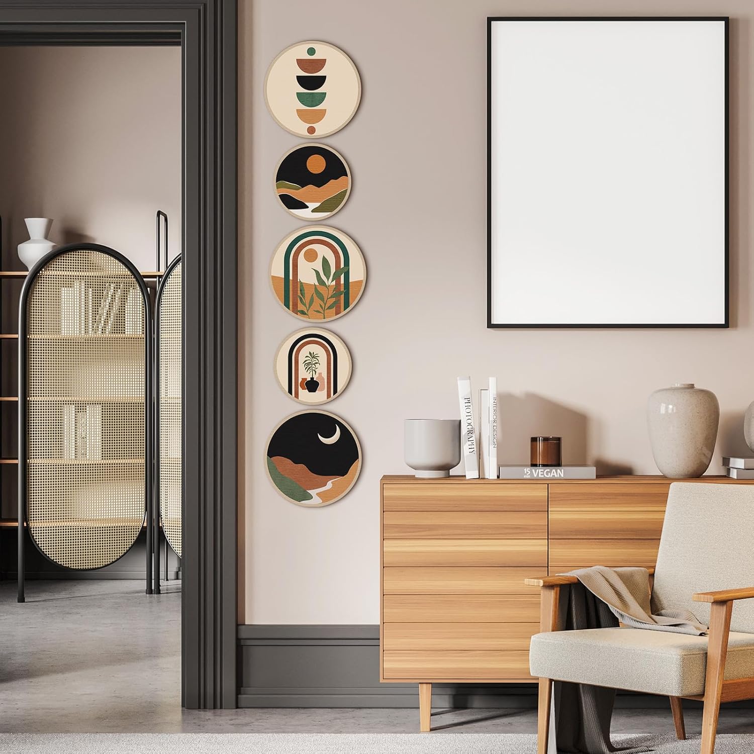 - Reassuring Quality: the boho wall art is made of quality wood material with metal hook, which is sturdy and serviceable, odorless and smooth, no burr to hurt your hands and not easy to fade or break, can serve you for a long time