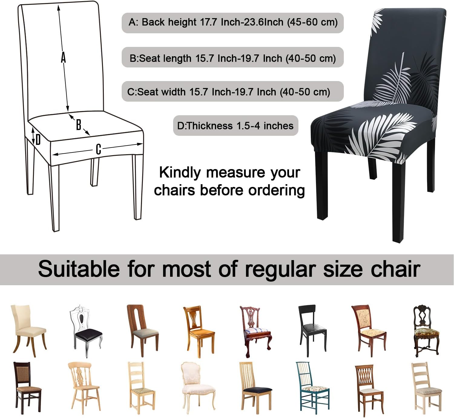 - 【Suitable for Chair Size】- Chair back height 17.7 Inch-23.6Inch (45-60 cm), chair-back width 15.7 Inch-19.7 Inch (40-50 cm),Inch Chair seat length and width 15.7 Inch-19.7 Inch (40-50 cm).Thickness 1.5-4.5Inch (4-12 cm). Please check the measurement guide in the item picture before order..(Please allow 0.5-1 inch error due to manual measurement.)