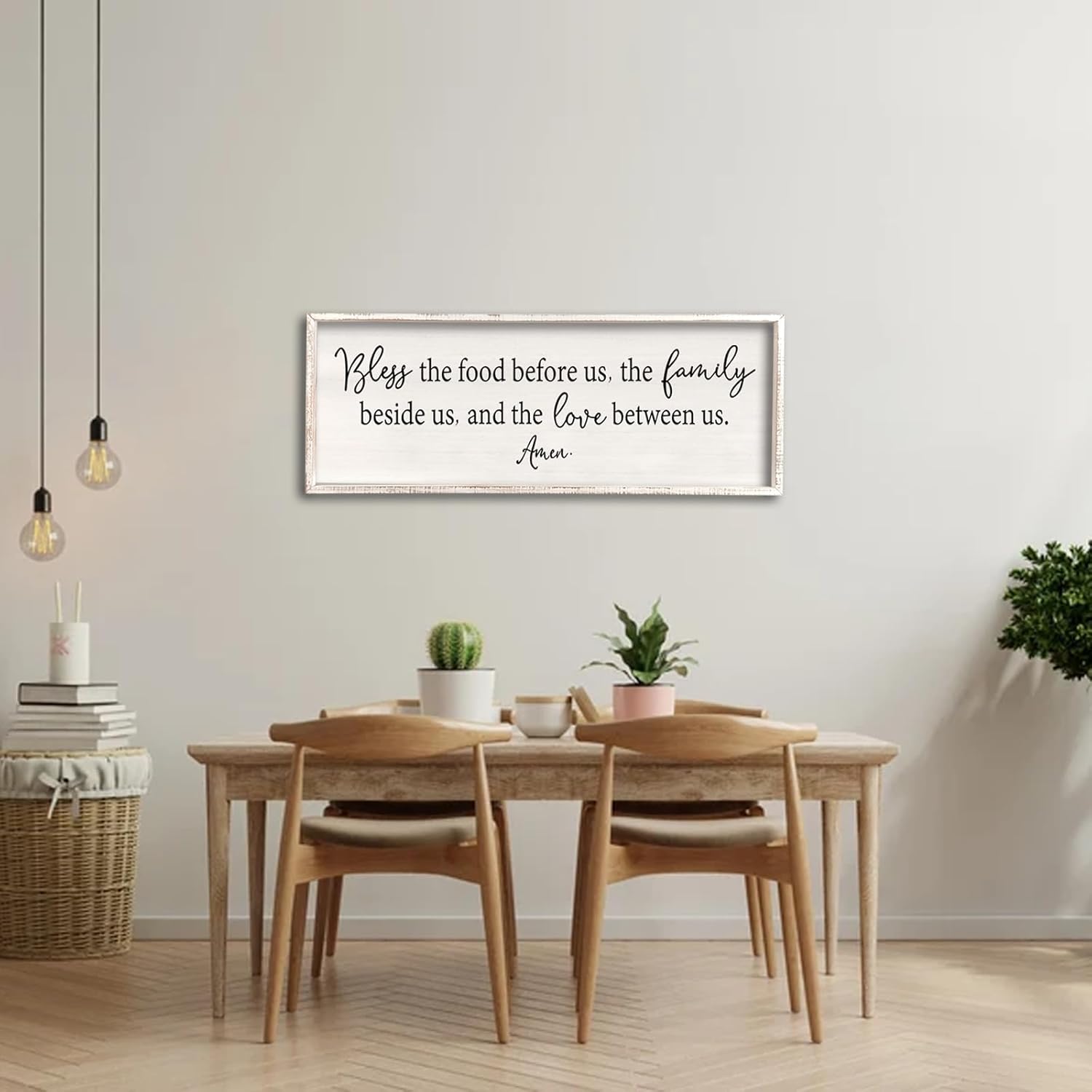 Bless the Food Before Us Sign Wall Decor 40"X15" Large Farmhouse Dining Room Wall Decor Framed Wood Rustic Home Wall Art Kitchen Decoration (White)