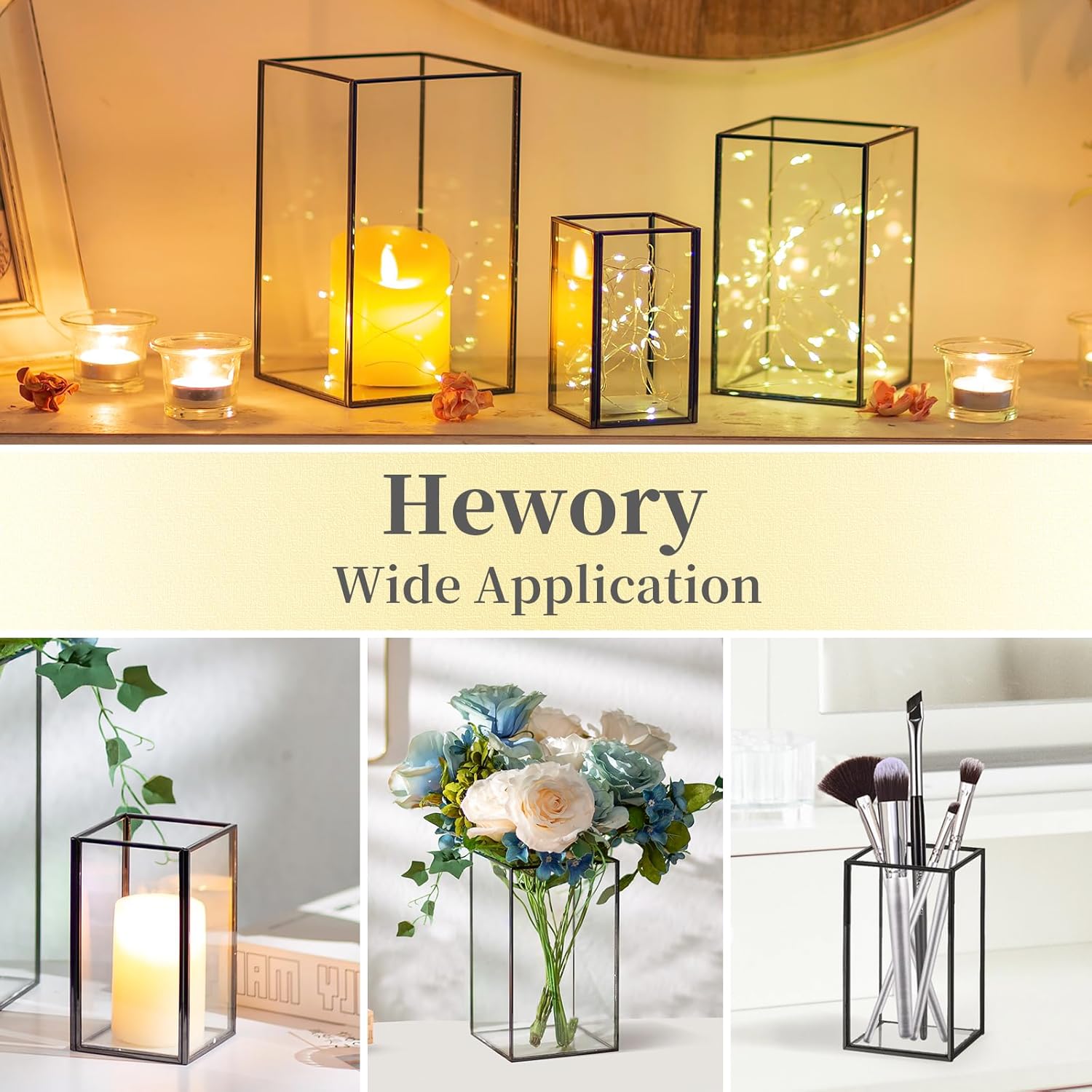 Glass Hurricane Candle Holder Large - Hewory 3pcs Black Rectangle Flower Holders Centerpiece for Table, Tall Floor Square Pillar Candle Lantern for Wedding, Anniversary, Party, Fireplace, Dining Room
