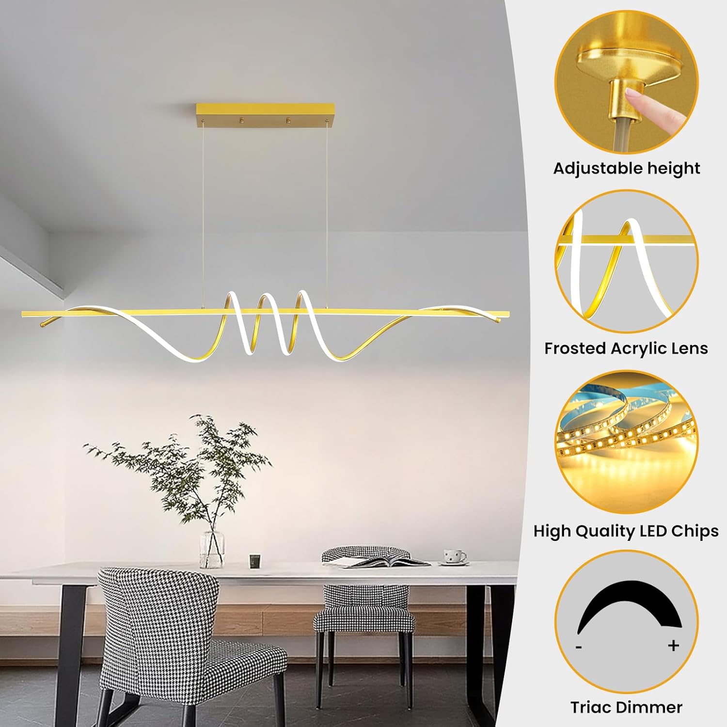 Modern Design Dimmable Desk Linear Pendant Light, with Remote Control Dimmable 3 Color Mode & Brightness Ceiling Lamp, Anti-Flicker Dining Light Fixture for Kitchen, Dining Room (Gold, 57IN)