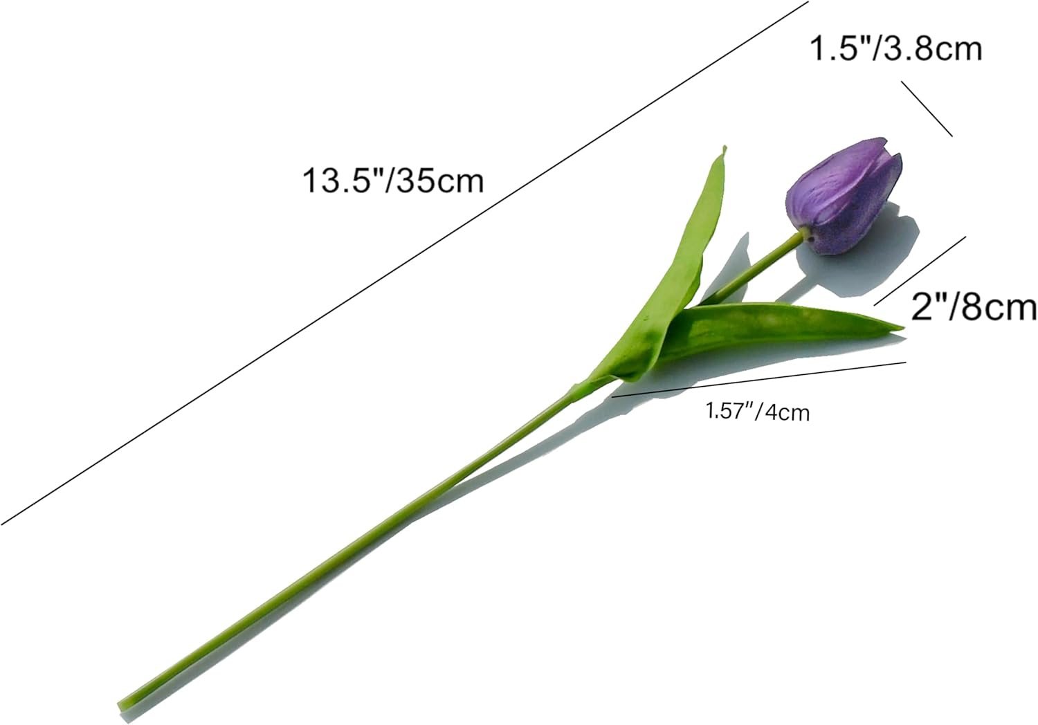 - Premium PU Petals with a Silk-Like Feel.Made from high-quality PU material, each tulip offers a velvety texture and lifelike appearance, closely resembling a freshly bloomed flower.