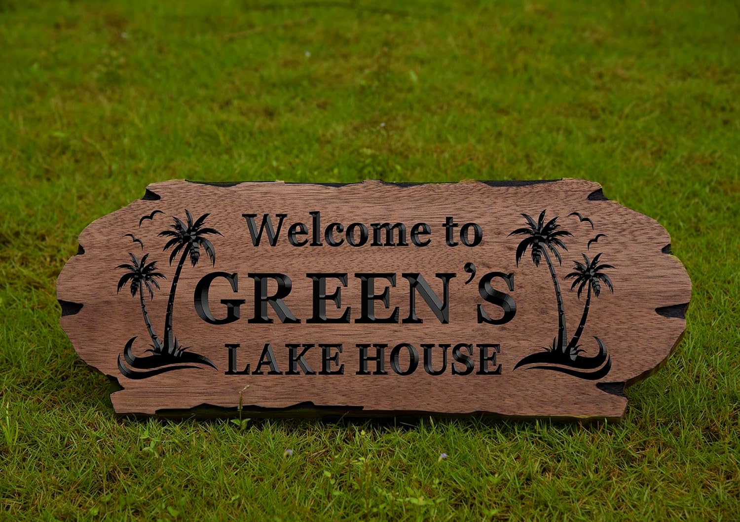 Personalized Cabin Sign - Rustic Wood Welcome Sign for Outdoor, Home Wall Decor,Farmhouse Decor, Custom Backyard Sign,Carved wood sign.3D Carving Wood Sign.