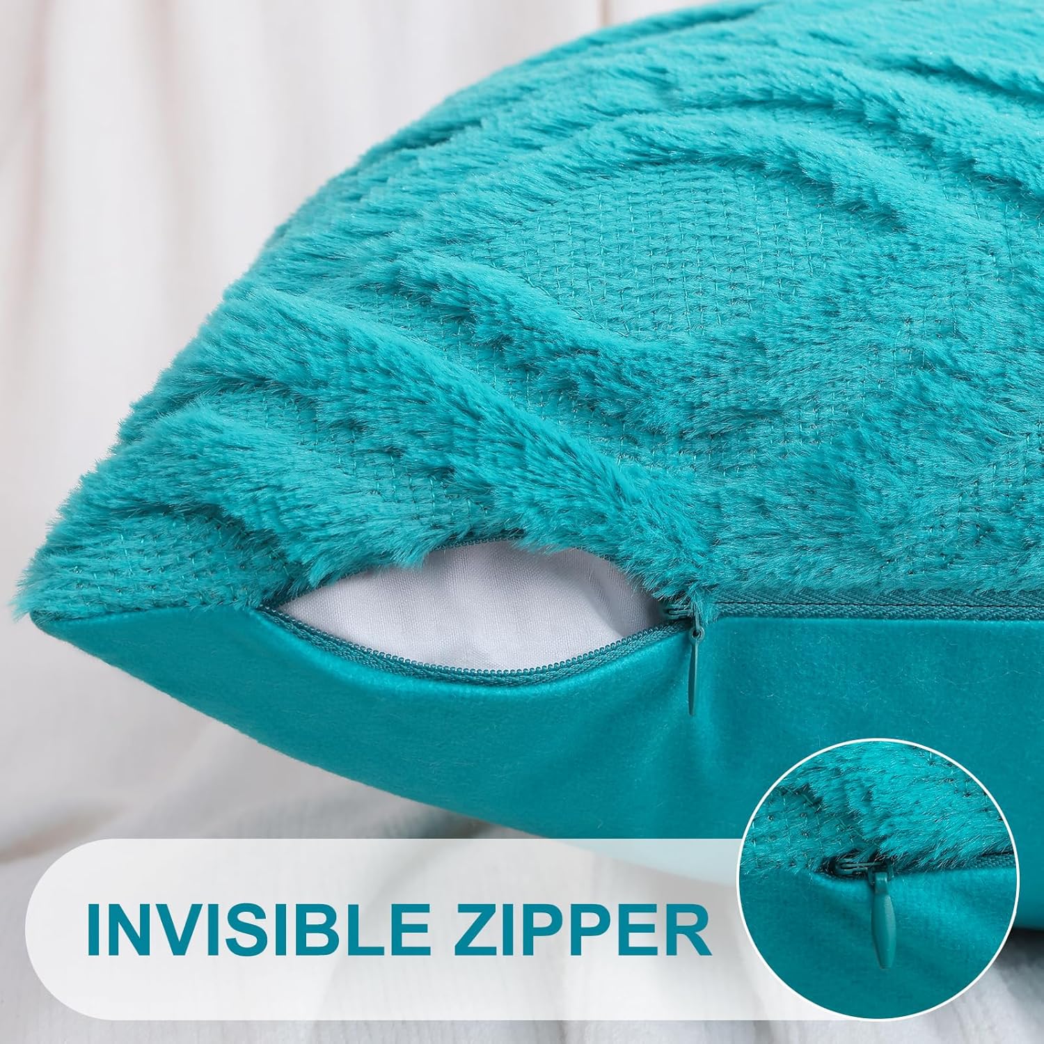 decorUhome Fall Throw Pillow Covers 20x20 Inch Set of 2, Soft Plush Decorative Faux Fur Turquoise Solid Couch Pillow Covers, Accent Farmhouse Neutral Square Euro Pillow Cases for Sofa Bed Living Room