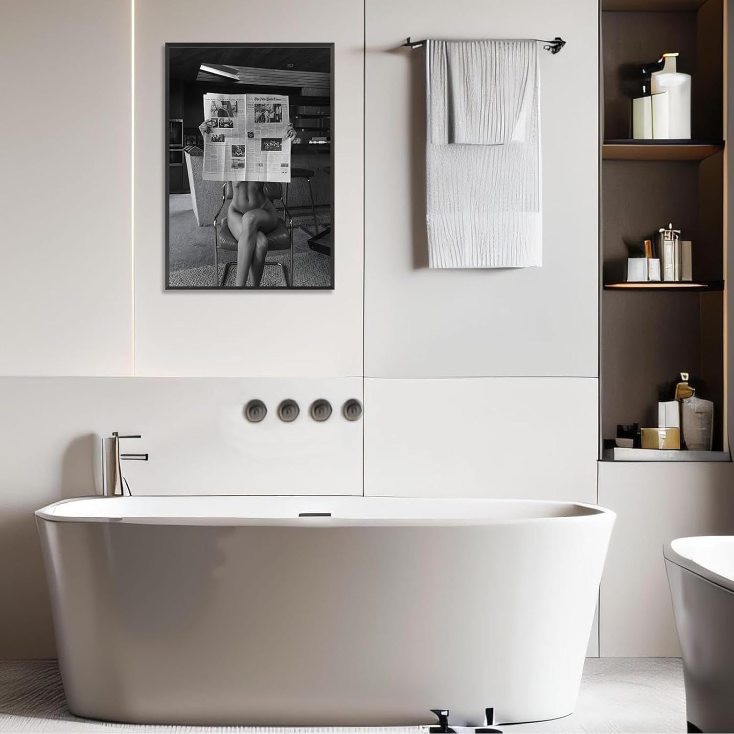Sexy Glamorous Reader Poster Feminist Art Black and White Preppy Canvas wall art Retro Room Aesthetic Newspaper prints painting Trendy Naked Women Art wall decor 12x16in Framed