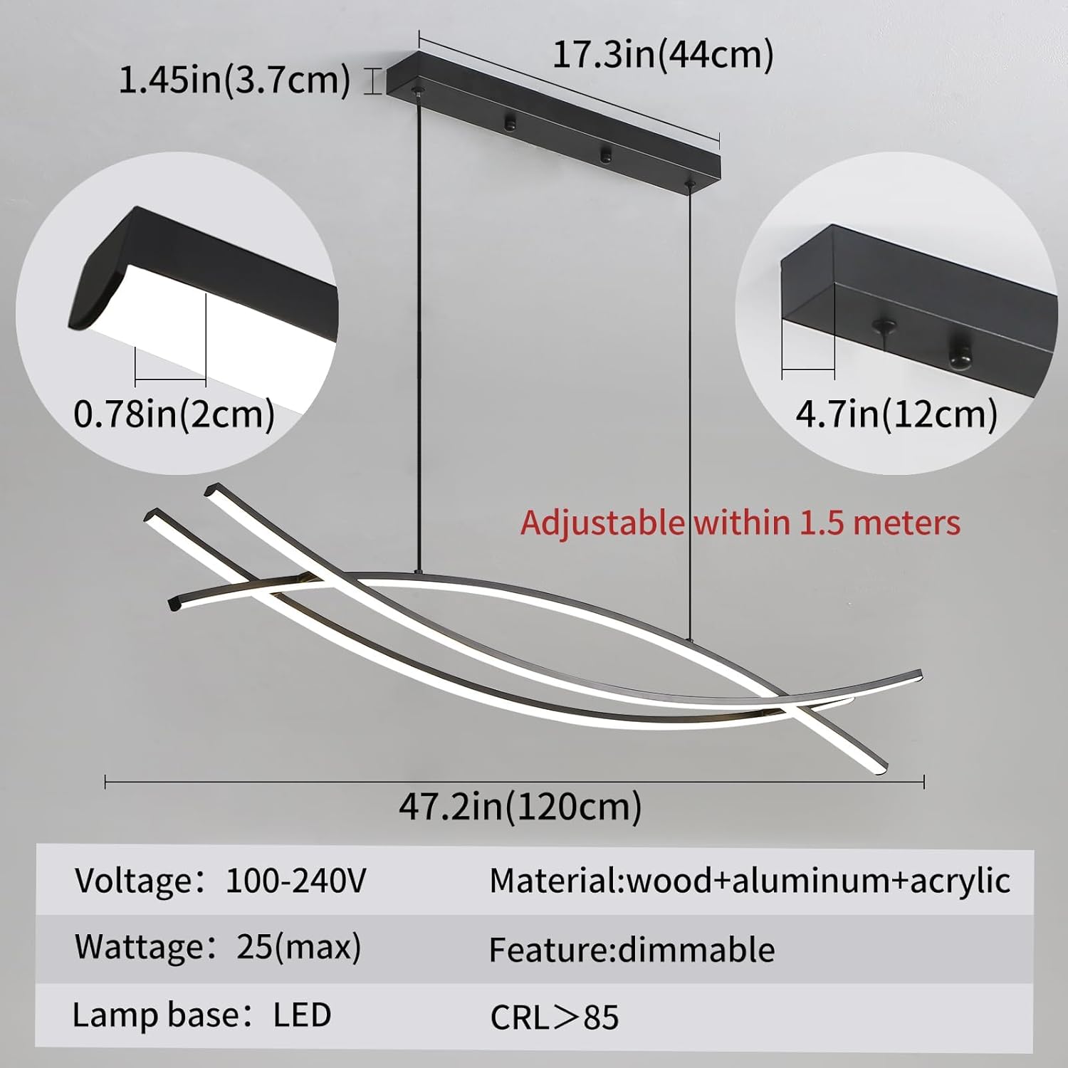Modern Chandelier, Linear Pendant Light LED Dimmable Hanging Light Fixture, 3000K-6500K with Remote Control (Black, 47IN)