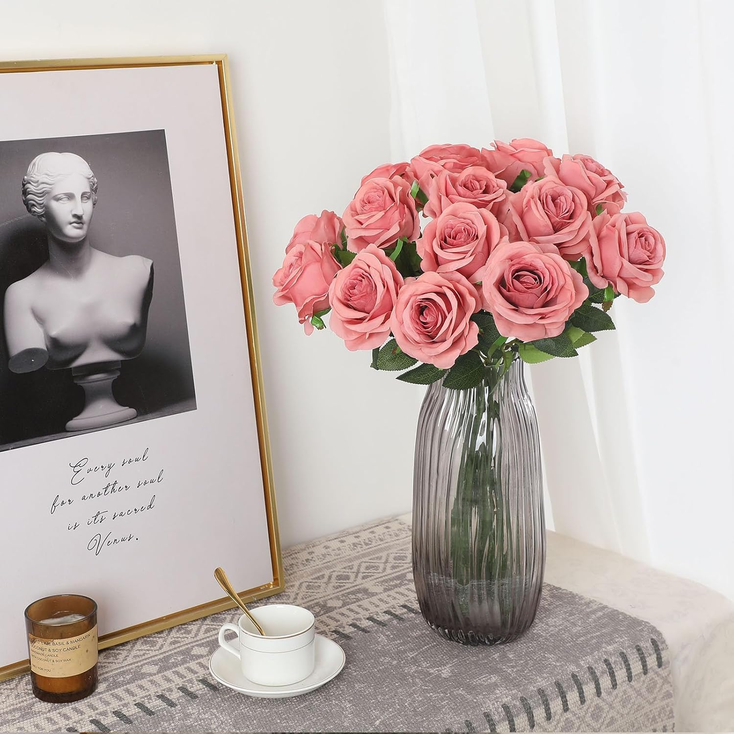 - What You Get:Package including 10pcs realistic fake dusty pink roses,total length 50 CM / 19.7 In,roses head are in full blooming,8 CM / 3.15 in in diameter