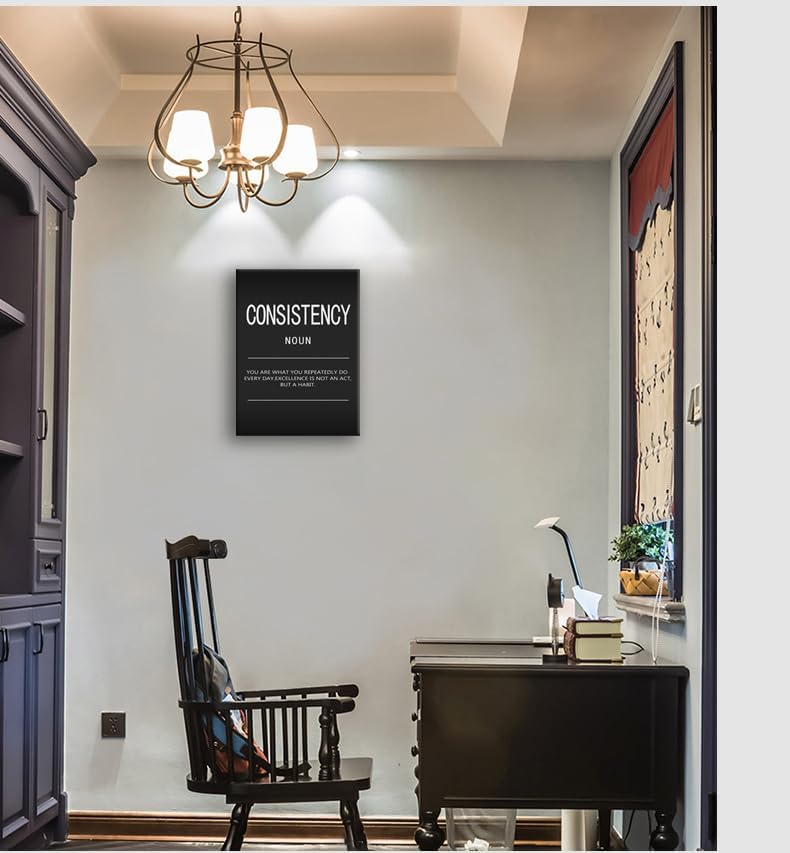 Consistency Noun Inspirational Canvas Wall Art Office Decor Motivational Painting Inspirational Entrepreneur Quotes Posters and Prints Artwork Decor Home Living Room Gym Framed[18" W x 24" H]