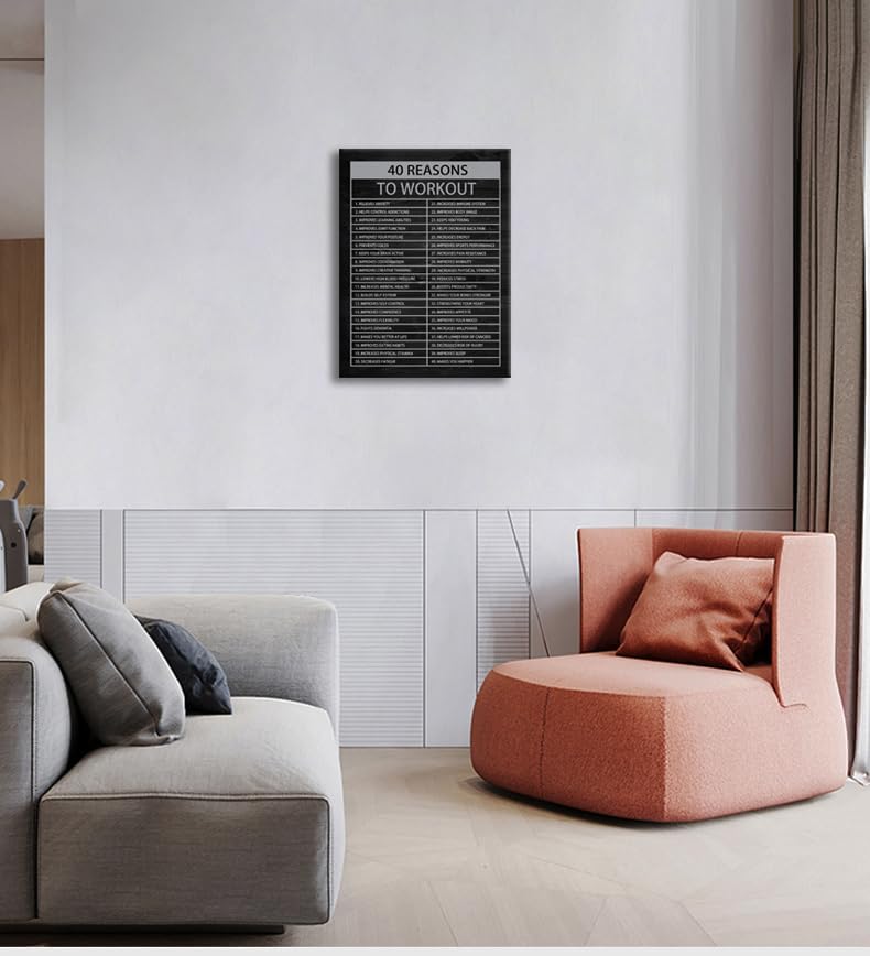 Motivational Canvas Painting Wall Art Success Quote Wall Art 40 Reasons to Workout Inspirational Poster Positive Artwork Prints Picture Modern Home Wall Decor Gym Office Framed[18" W x 24" H]