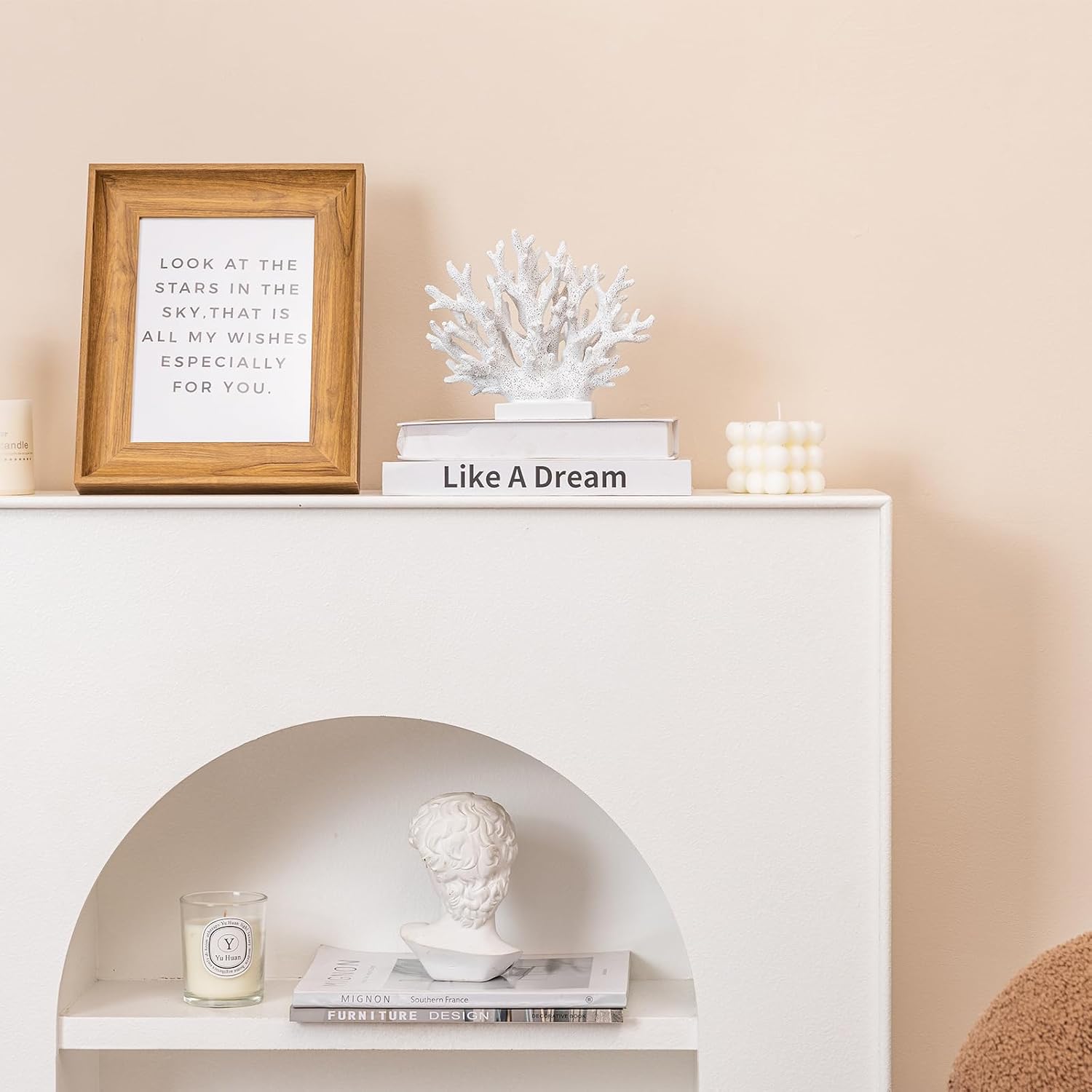 5.8" H White Coral Decor, Resin Coral Statue, Nautical Decorations for Home, Bedroom, Bathroom, Living Room, Beach/Coastal/Ocean Themed Cabinet Shelf Tabletop Decor