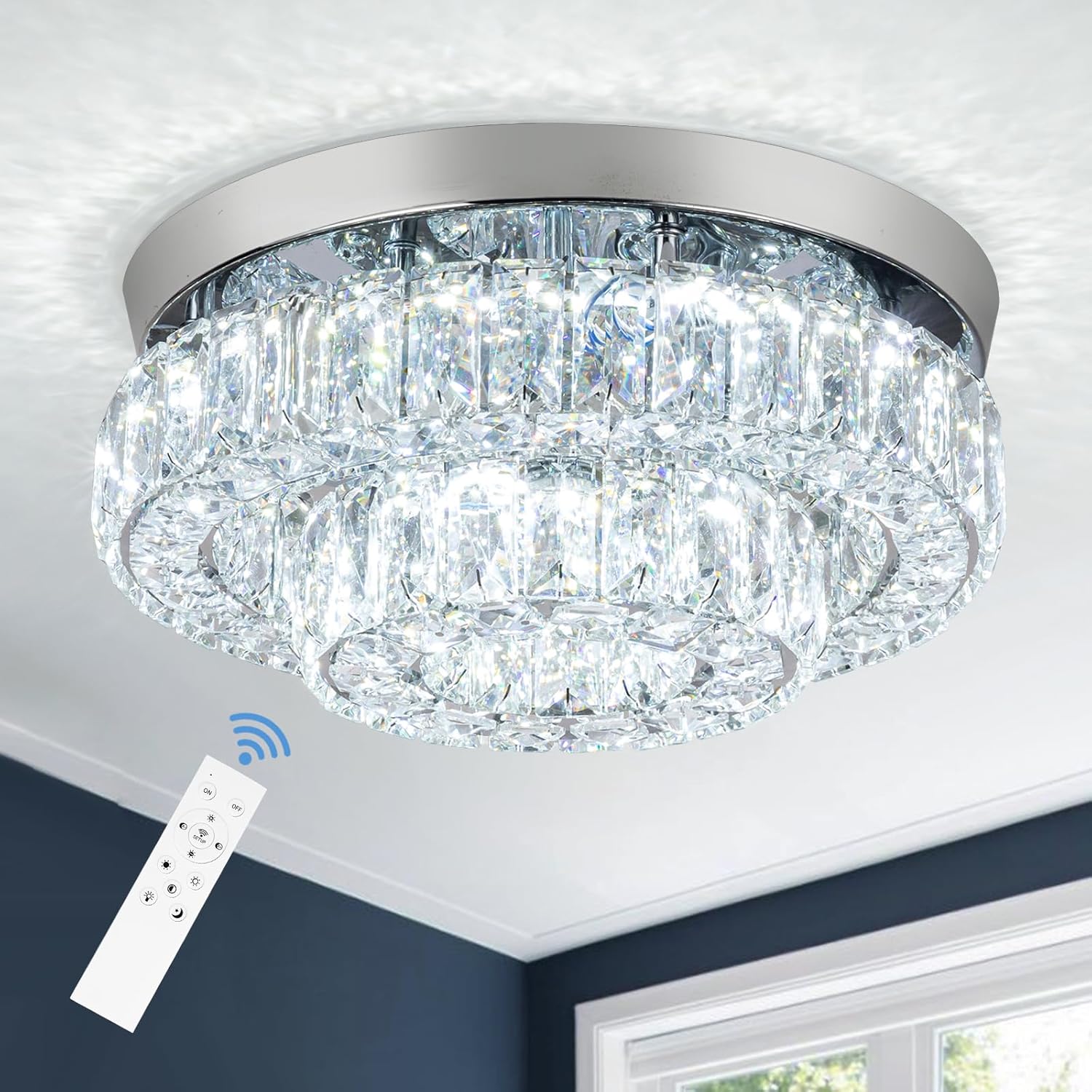 11.8" LED Chandelier 2-Layer Crystal Ceiling Light Fixture with Remote Control Flush Mount Chandelier Light for Hallway Bedroom Living Room Kitchen Foyer(dimmable)