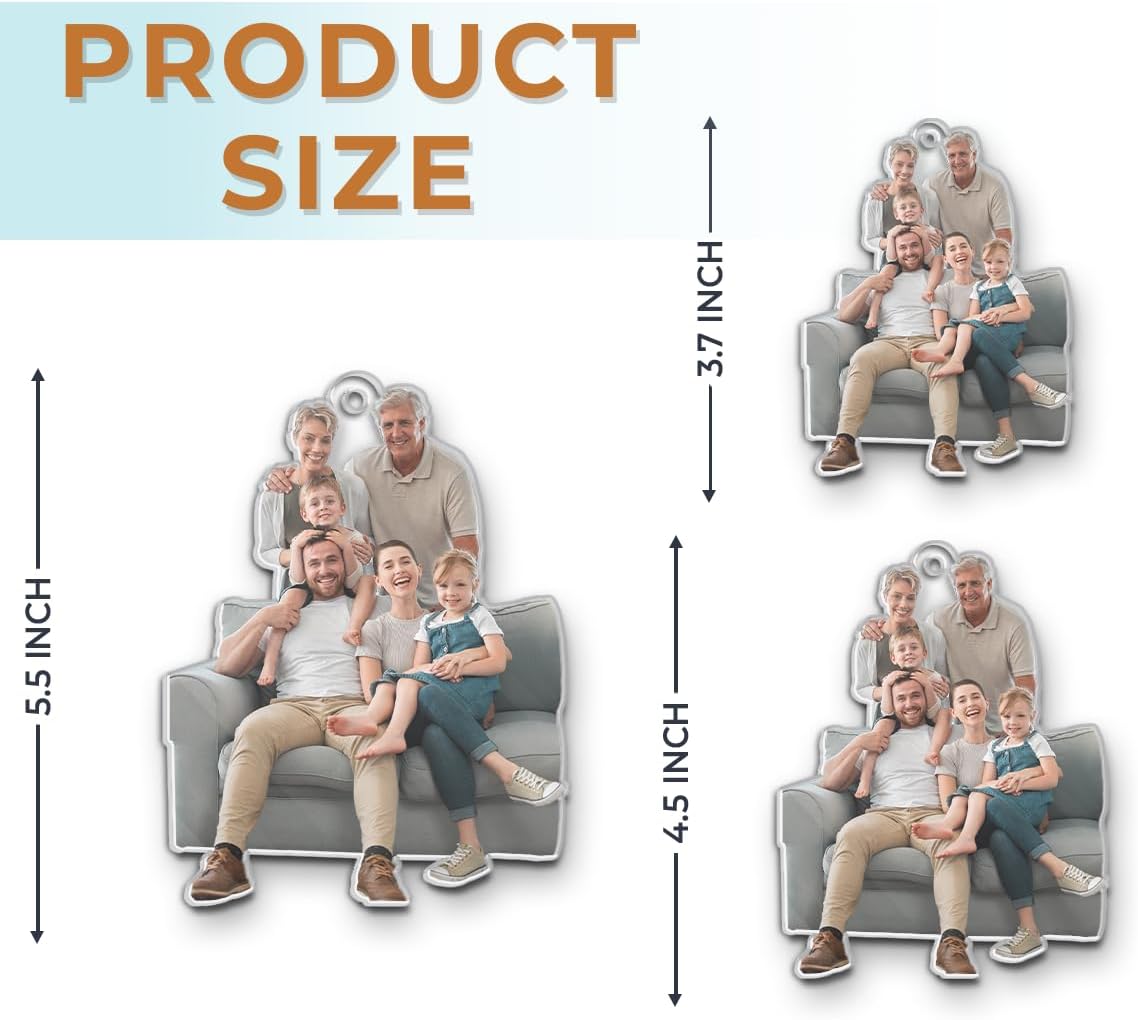 - 🎄 Custom Ornaments With Pictures: Crafted with high-quality acrylic, this ornament features a height of 3.7 inches (~9.5 cm) and a slim 0.12" thickness, ensuring its durability and lightweight design. The ornament can be customized with your photo, which makes it a truly personal and cherished gift. We include a hanging gold cord loop to easily hang on your Christmas tree or an ornament stand.