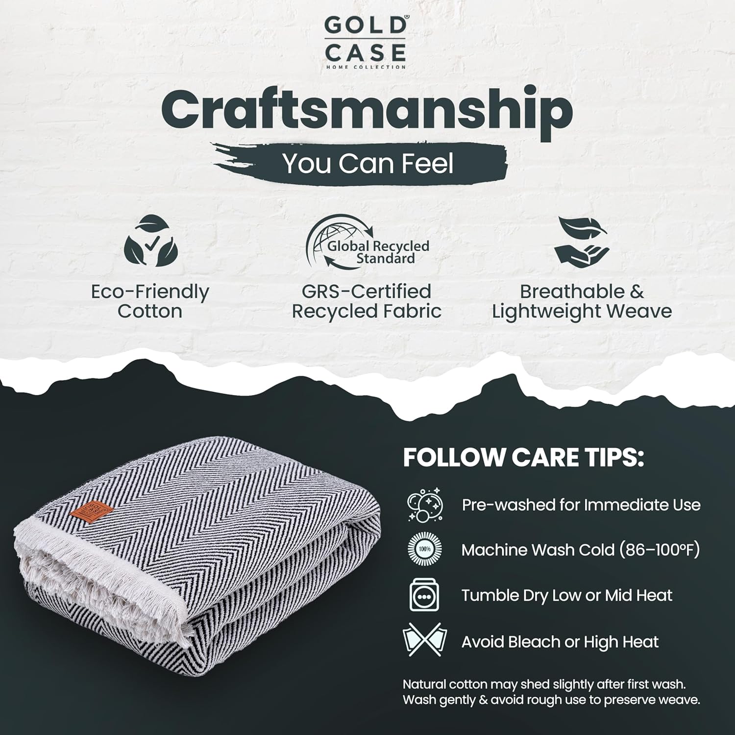 Gold Case Throw Blanket for Bed – 100% Recycled Turkish Cotton Bed Blanket – Decorative Throw Cotton Blankets for Living Room & Bedroom – Woven Twin Blankets - 71x90 - Black