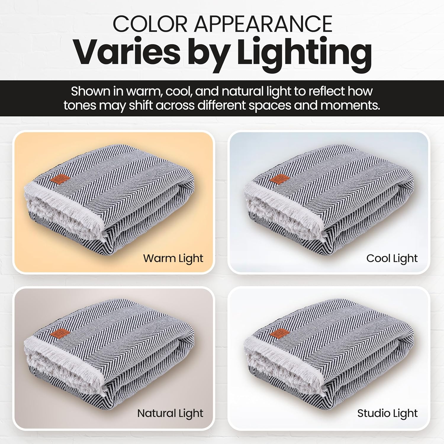 - CELEBRATE SUSTAINABLE STYLE: Made in Turkiye with recycled cotton, this cotton throw blanket brings eco-conscious comfort to your home; the soft weave and fringe detail give this woven blanket for bed a rustic, decorative touch that layers beautifully in any space