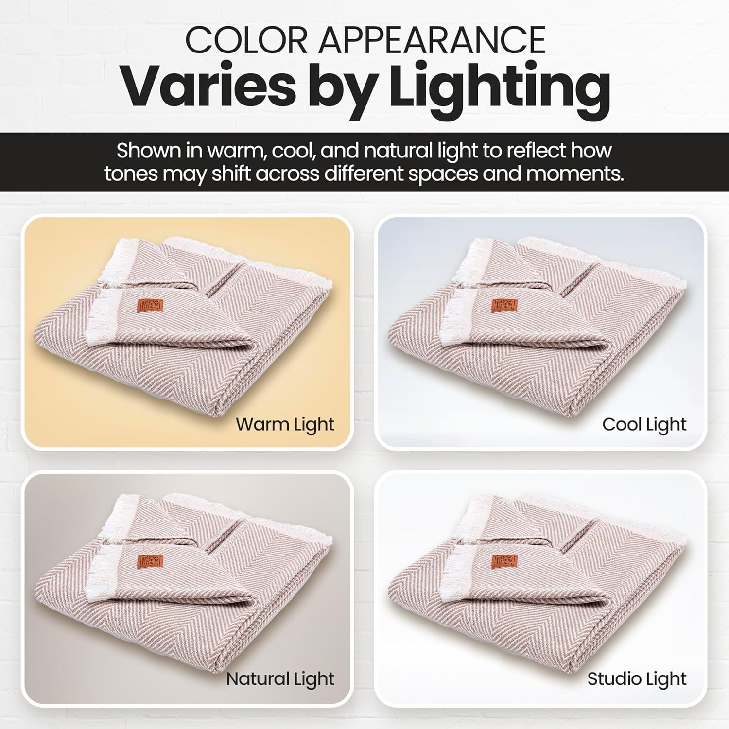 Gold Case Throw Blanket for Couch – 100% Recycled Turkish Cotton Blankets & Throws – Elegant Decorative Throw Blankets for Living Room Sofa – Woven Throws for Couch – Elegant Beige – 60x80