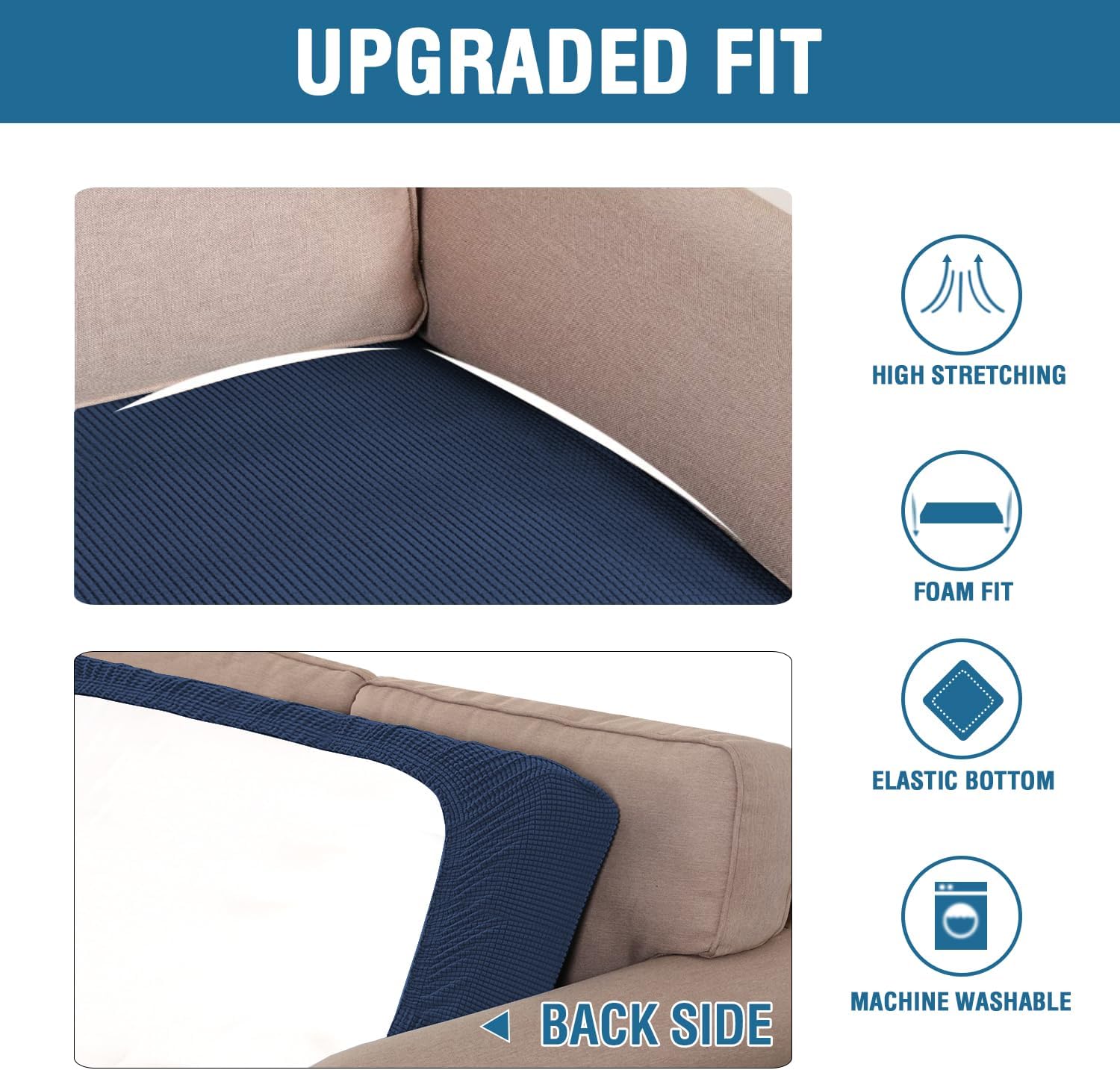 H.VERSAILTEX Super Stretch Individual Seat Cushion Covers Sofa Covers Couch Cushion Covers Slipcover Sets Thick Jacquard Textured Twill Fabric (1 Piece Loveseat Cushion Cover, Navy)