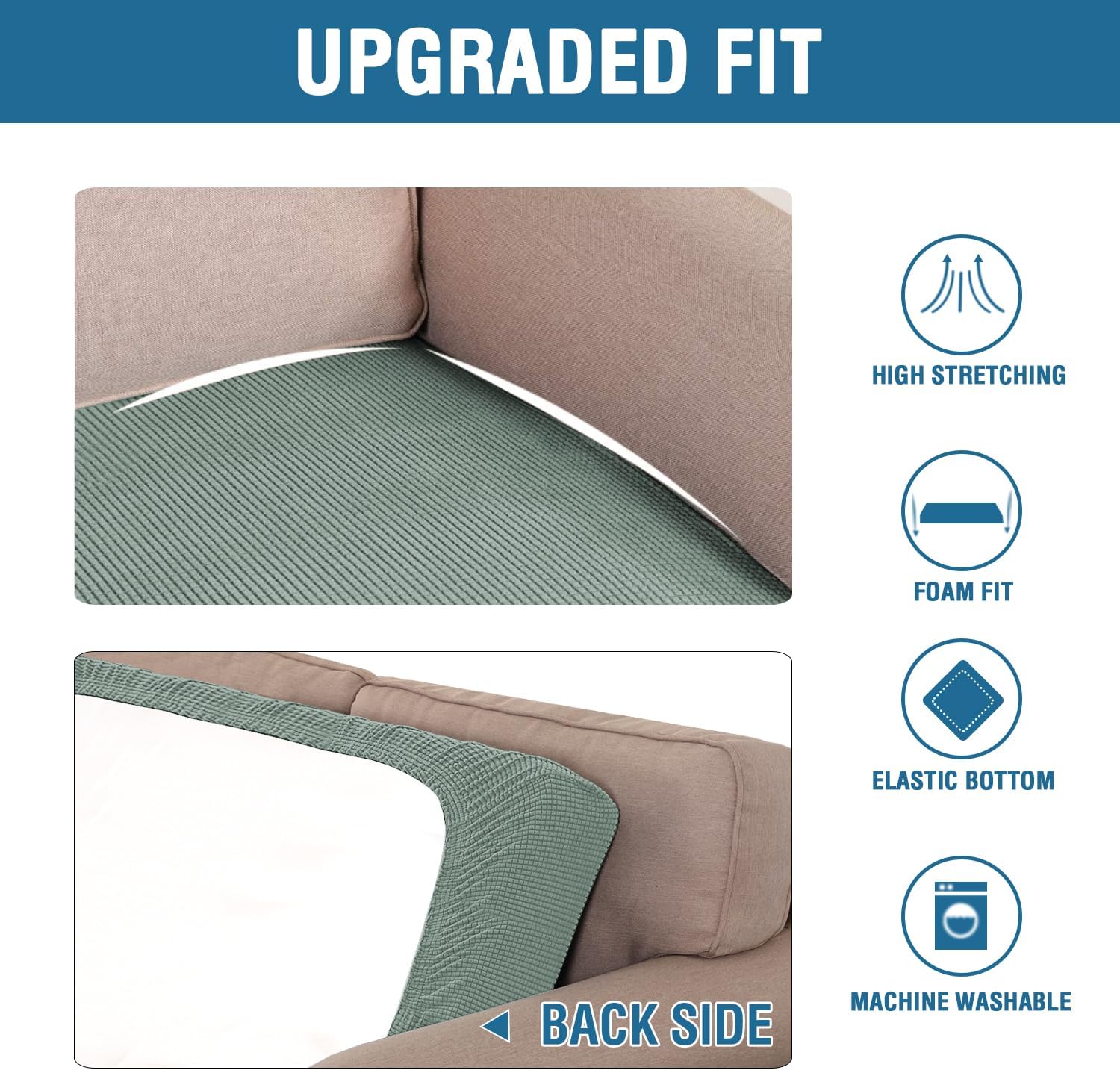 H.VERSAILTEX Super Stretch Individual Seat Cushion Covers Sofa Covers Couch Cushion Covers Slipcover Sets Thick Jacquard Textured Twill Fabric (1 Piece Sofa Cushion Cover, Sage)