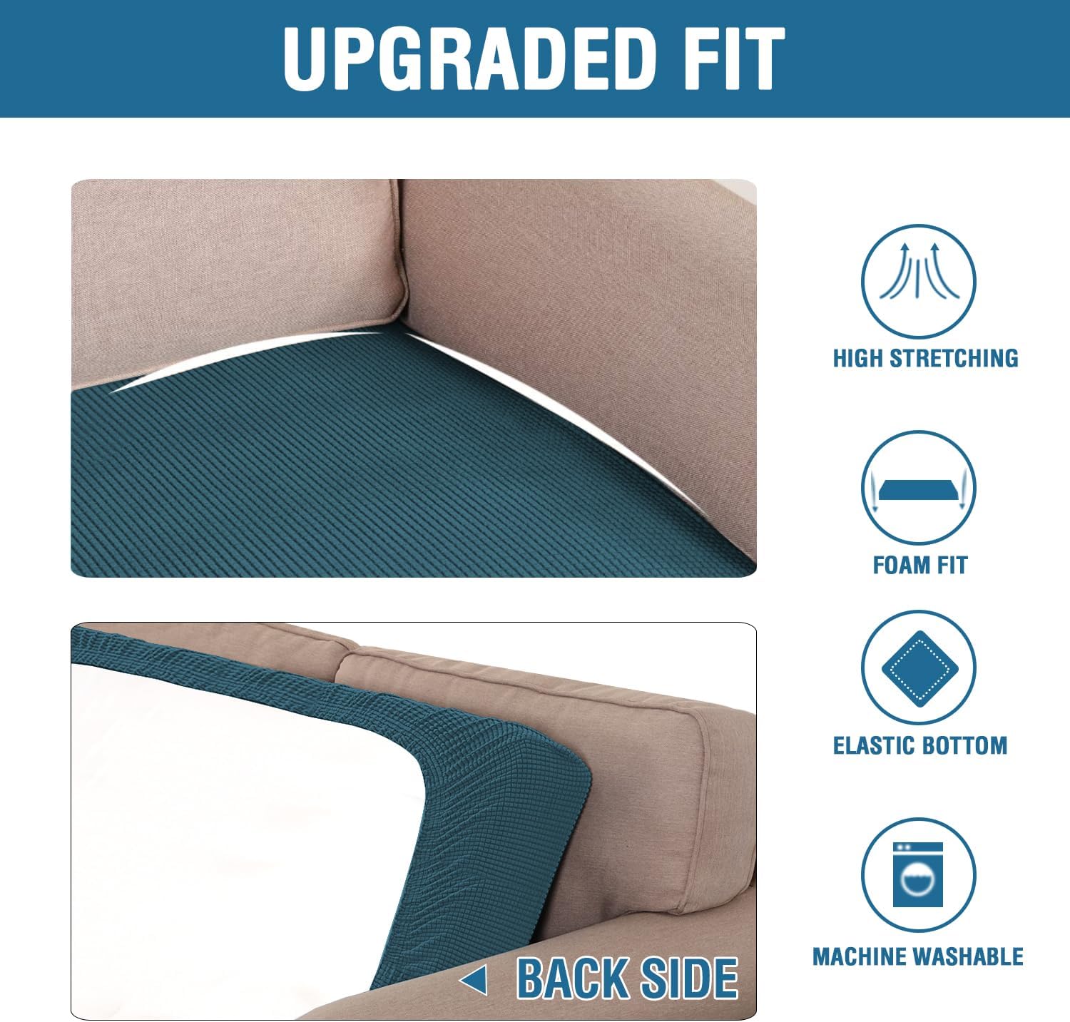 H.VERSAILTEX Super Stretch Individual Seat Cushion Covers Sofa Covers Couch Cushion Covers Slipcover Sets Thick Jacquard Textured Twill Fabric (1 Piece Sofa Cushion Cover, Deep Teal)