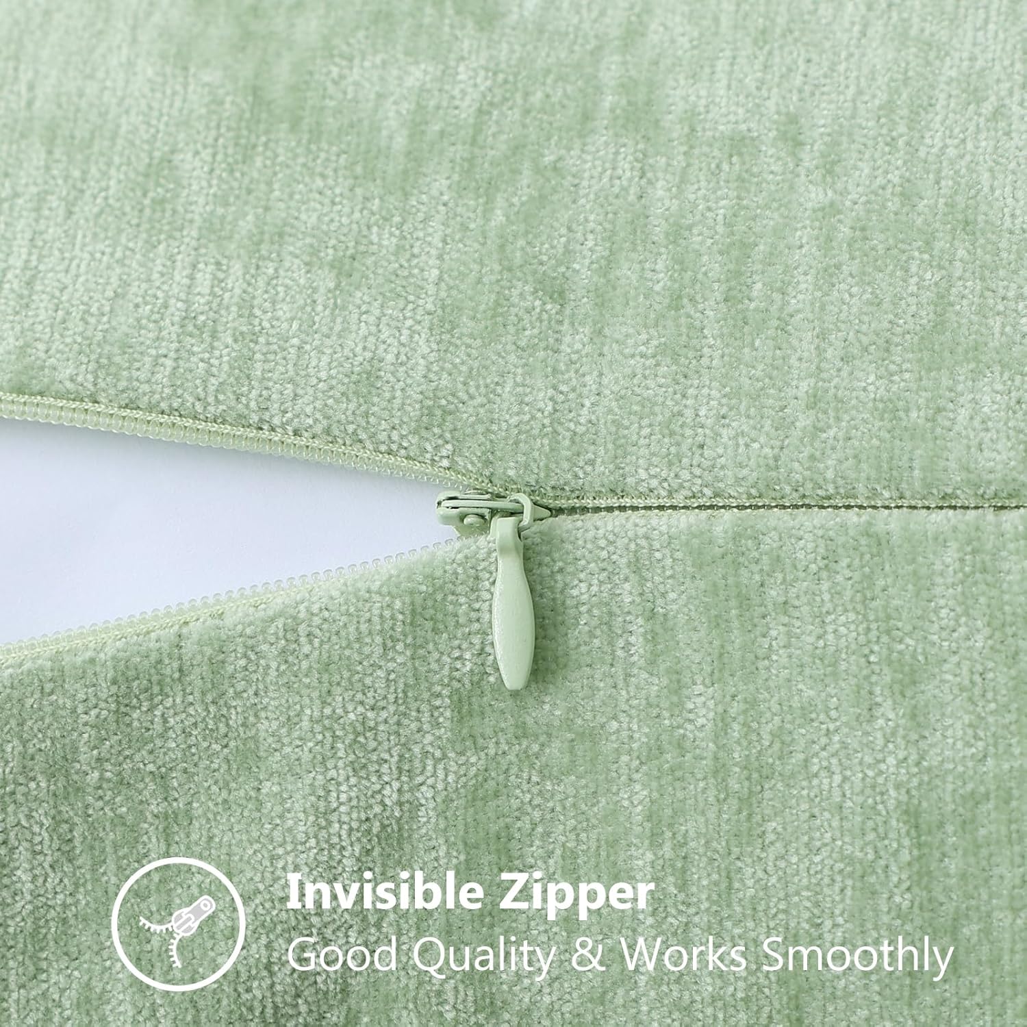 decorUhome Chenille Soft Throw Pillow Covers 12x20 Set of 2, Lumbar Velvet Farmhouse Neutral Decorative Euro Pillow Covers with Stitched Edge for Couch Sofa Bed Home Decor, Sage Green