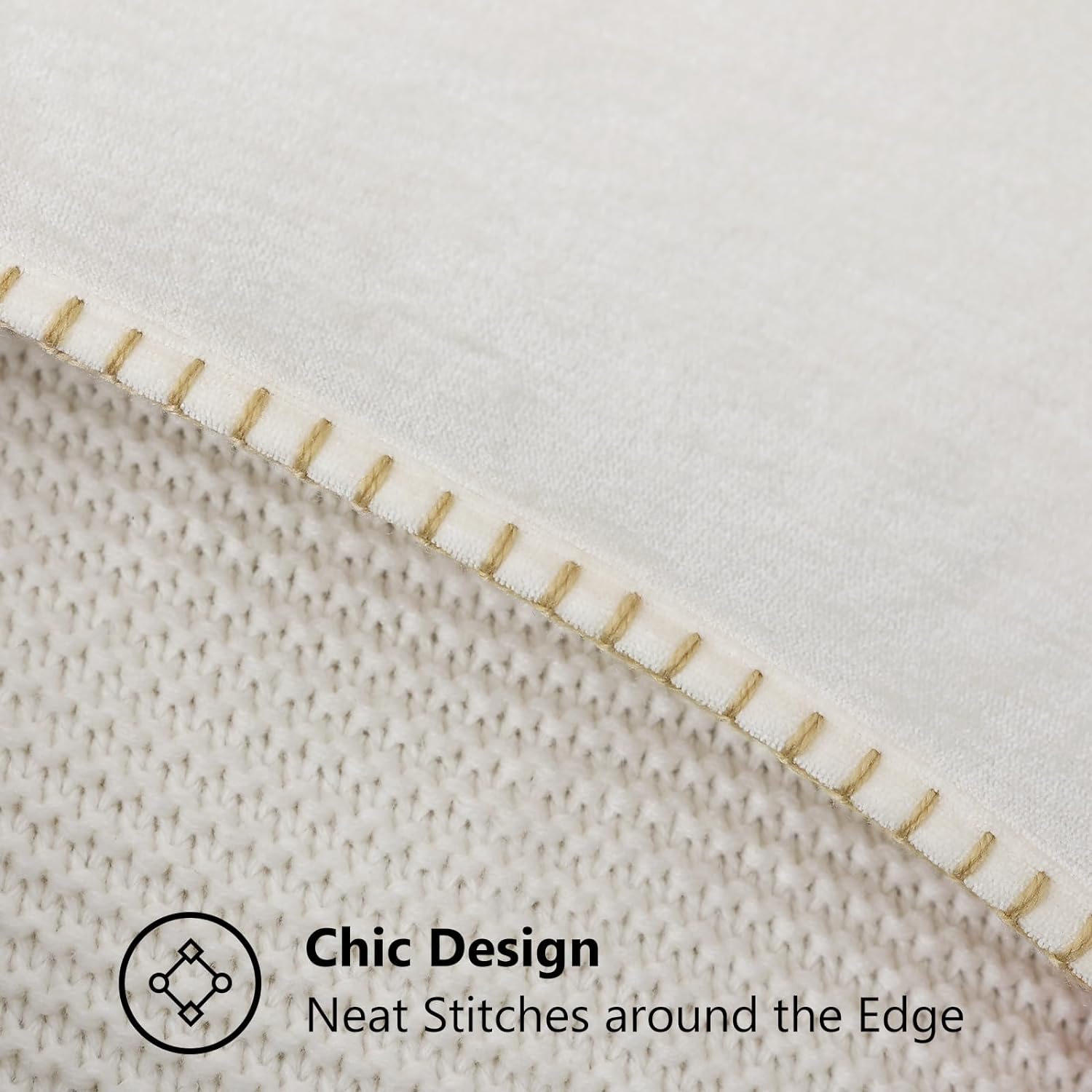 decorUhome Chenille Soft Throw Pillow Covers 26x26 Set of 2, Farmhouse Velvet Neutral Decorative Euro Pillow Covers with Stitched Edge for Couch Sofa Bed Home Decor, Cream White