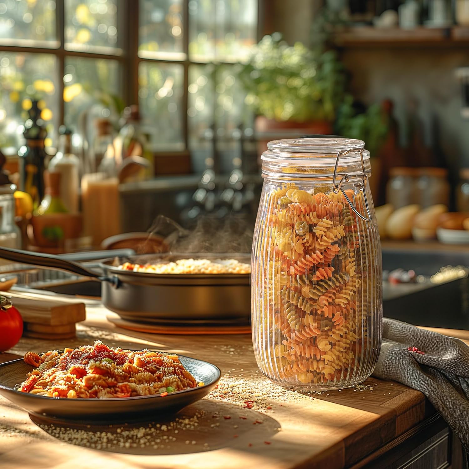ComSaf Airtight Glass jar with lid 51oz Set of 3, Glass Storage Containers with Lids, Large Glass Canister, Striped Clip Fastening Jar for for Canning, Flour, Pasta,Coffee Beans, Cereal, Rice, Pickle