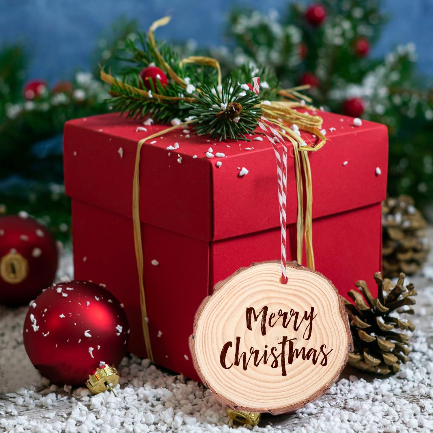 - 【 Easy to Use】 Each wood slice comes pre-drilled with a small hole and includes a roll of jute rope and a roll of red-and-white intersecting rope, making it convenient for you to hang your finished ornaments.