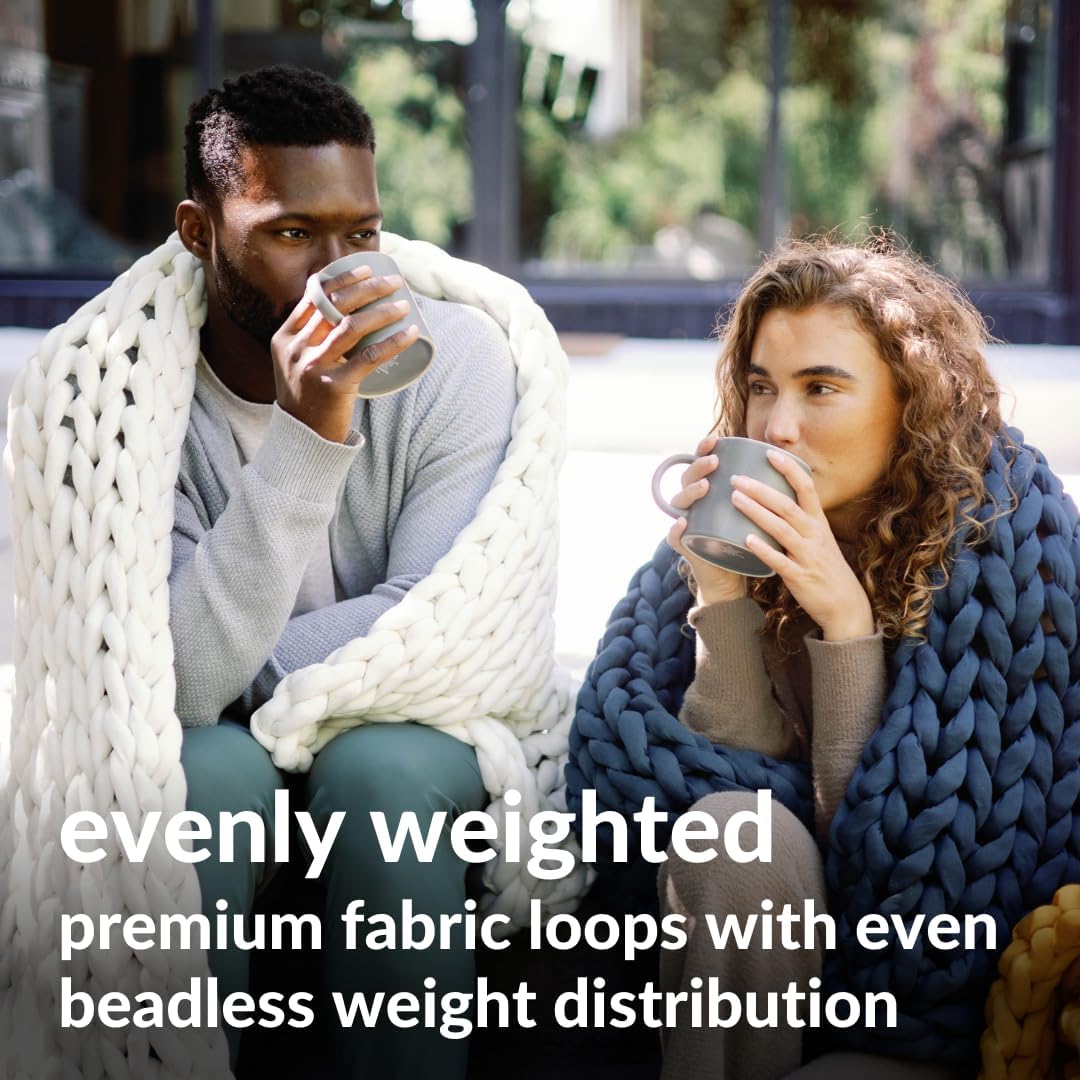 - WHISPER SOFT EMBRACE: No more sleep disruptions from noisy glass beads. Our beadless Nuzzie chunky blanket uses a plush fabric filling that stays uniform, presenting both visual charm and tactile comfort. Night after night, sink into the calming hug of an evenly distributed weight.