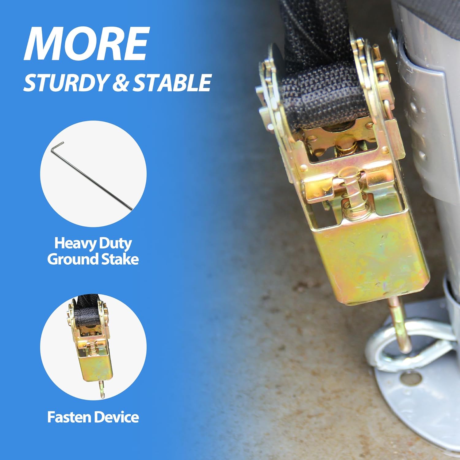 - ❗For long term use and safety, please make sure to use rope, ground anchors for stability.If you want to place it on the grass for a long time, you need to pour cement around the legs and fix it with expansion screws to ensure stability. (Expansion screws need to be purchased by yourself. )