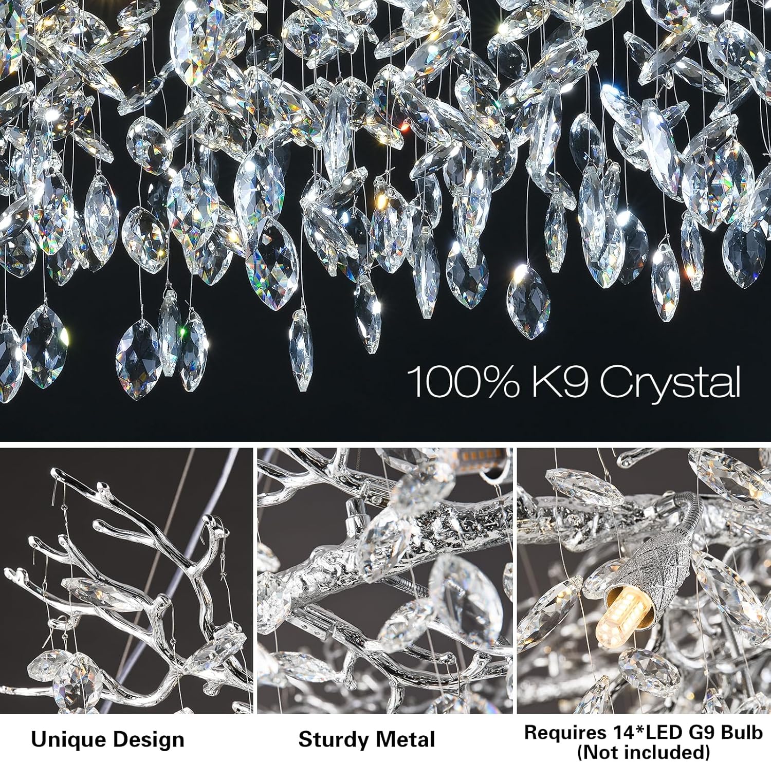 14-Light Modern Living Room Crystal Chandeliers,48" Round Silver Tree Branche Chandelier,Silver K9 Crystal Chandeliers for Dining Room,High Ceiling,Entryway、Foyer
