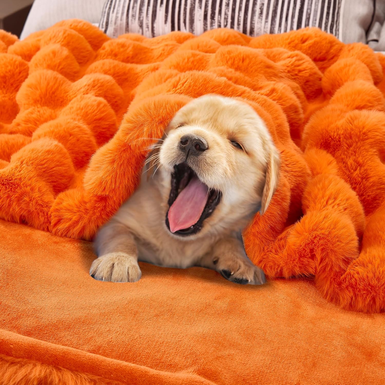 - 【Exquisite carft make the bubble stable】Our luxe large fuzzy furry rabbit faux fur throw blankets are well made in every process. We gurantee its skin-firendly and eco-friendly due to premium microfiber selection. High-end weaving ensure the durable and fairly uniform of each bubble. Neat stitching with minky fleece velvet is not only a brilliant match,but also provide extremely soft and warm. Various chic color adoption decorate the bubble bright and colorful. You can choose the color that suits you best.