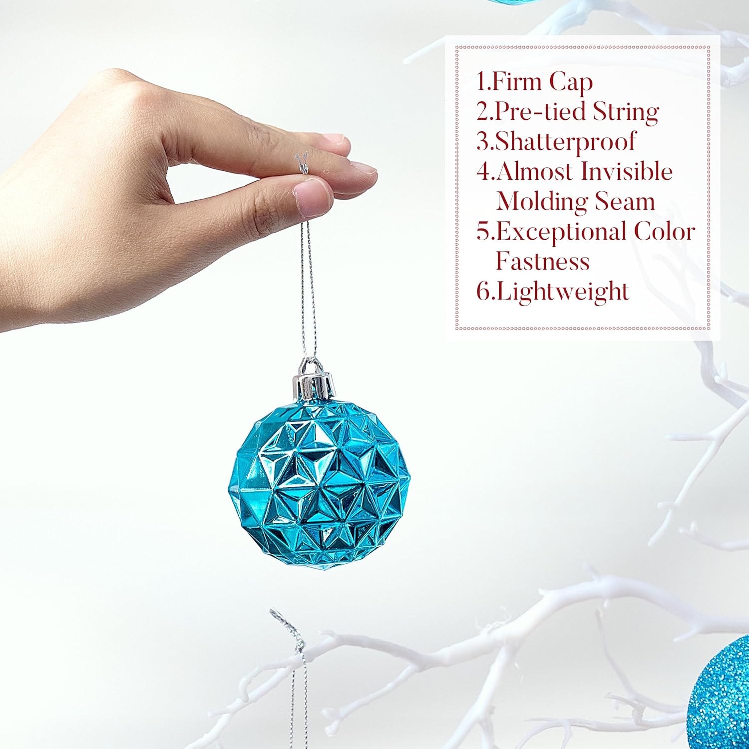 - 【Shatterproof】These Christmas ornament are made of sufficient thickness plastic to prevent breakage. The ornament set remains intact even after falling from 2 meters high onto a hard floor. It is suitable for family