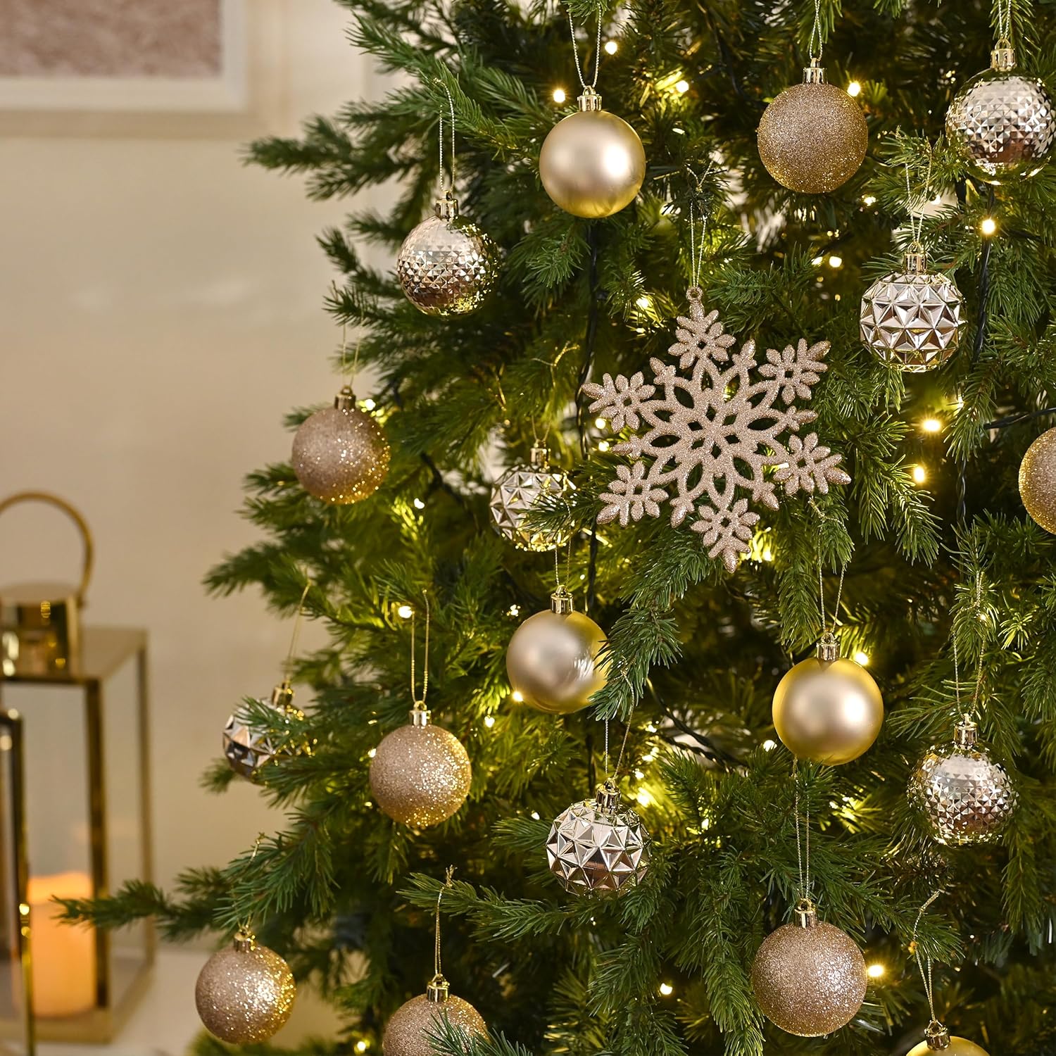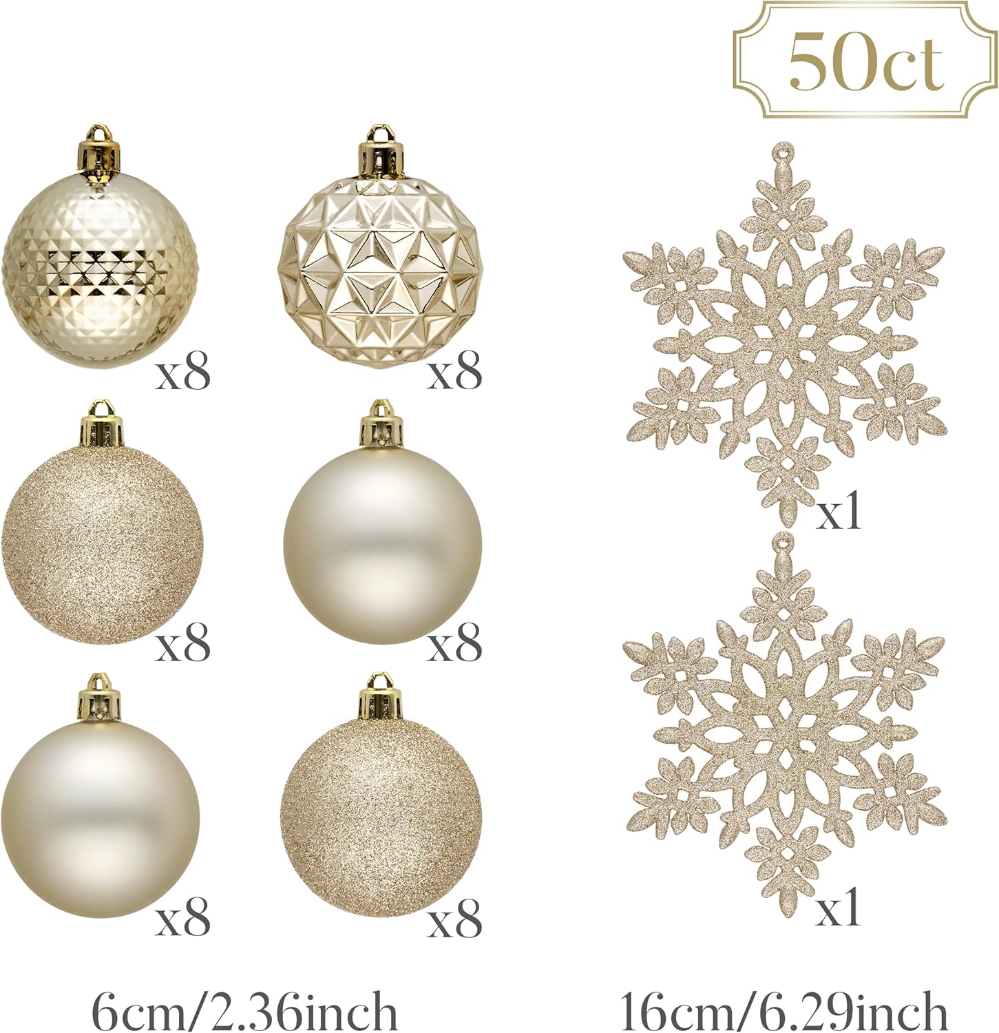 - 【Package and Size】This ornament ball set include 50pcs Christmas ornaments measuring 2.36 inches in diameter, featuring seamless connections for a polished look