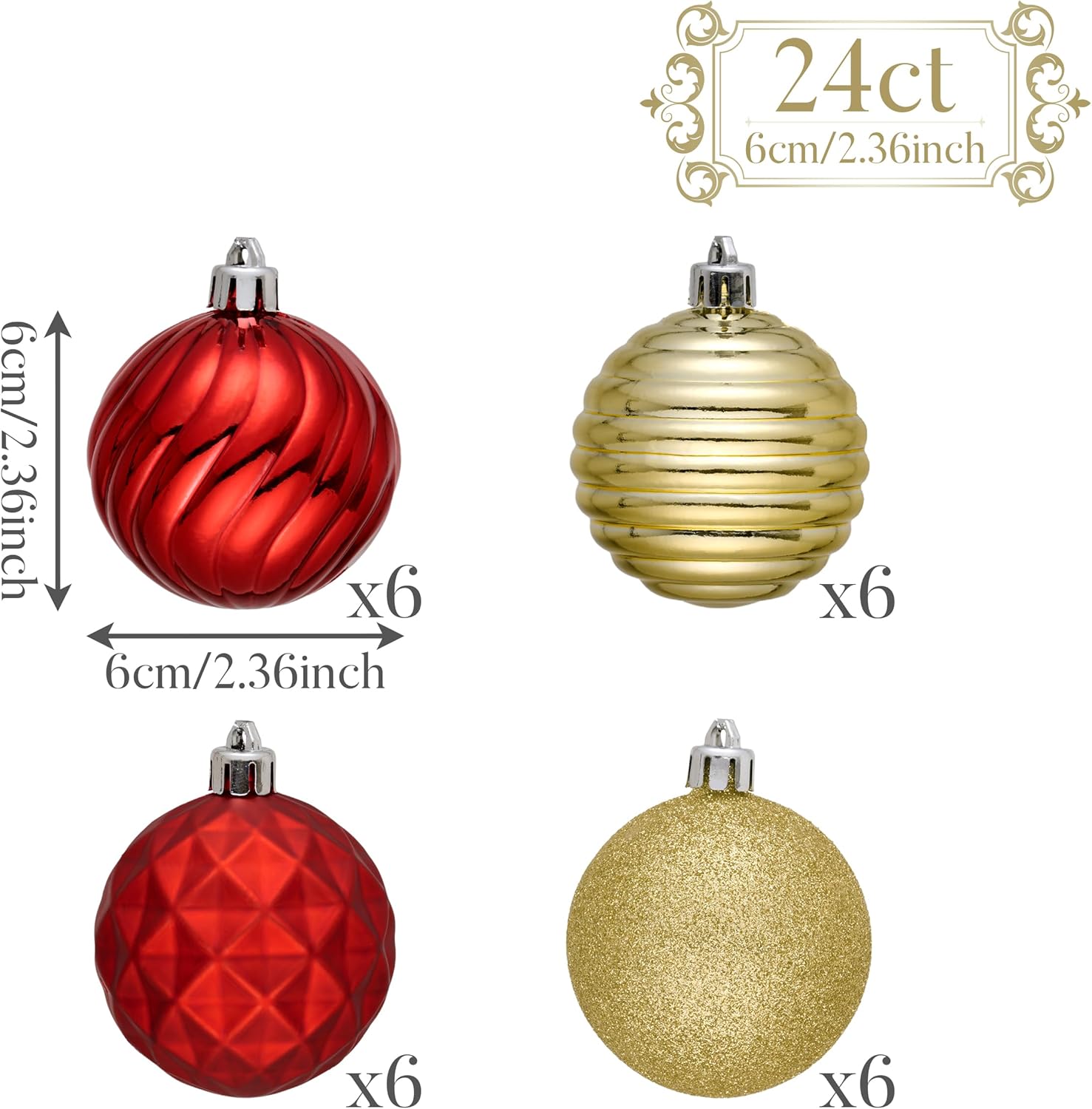 - 【Exquisite Craftsmanship】Enjoy a variety of finishes including shiny, matte, glitter, and textured. Each ball, measuring 2.36 inches, is crafted with a nearly invisible seam, enhancing its elegant appearance