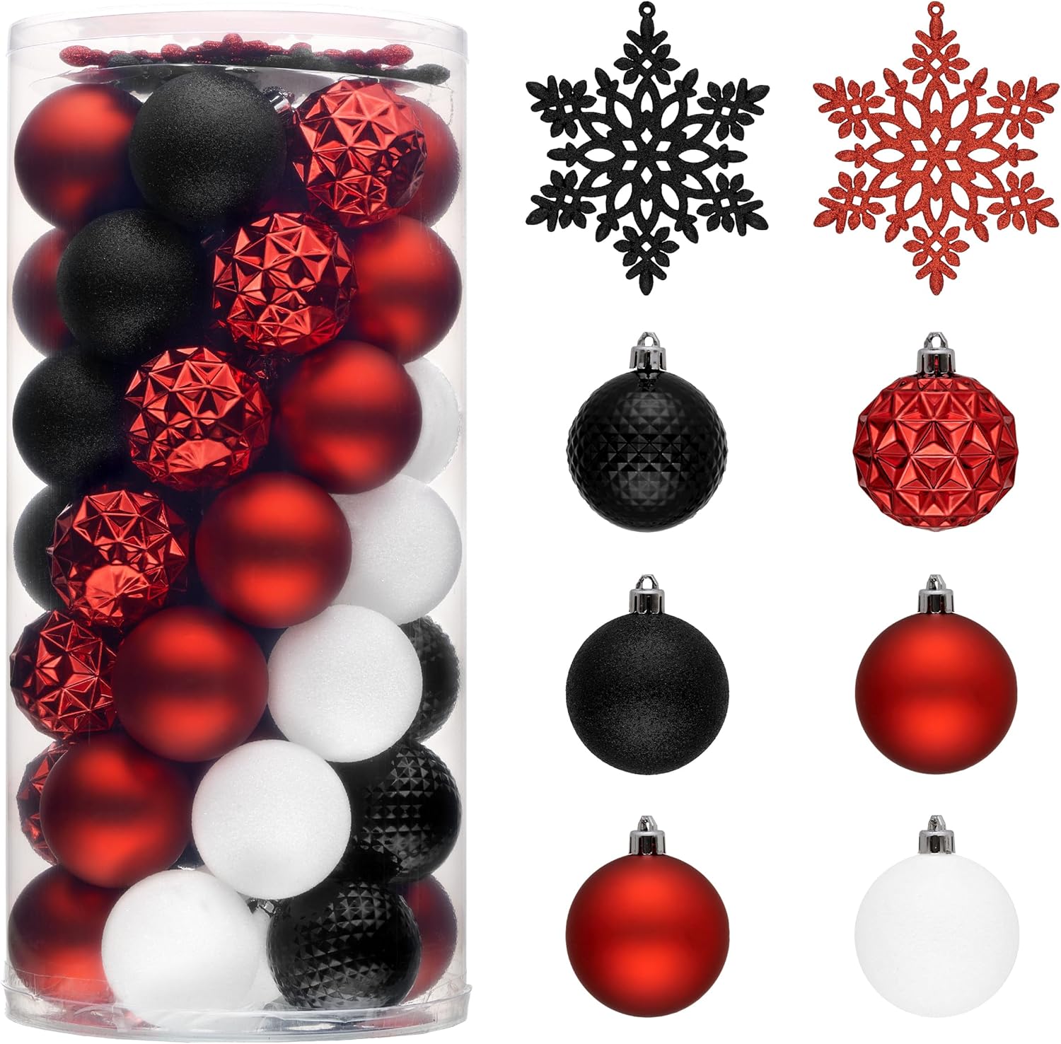 Valery Madelyn Christmas Tree Decorations Ornament Set for Fall Halloween, 50ct 2.36 Inches Red and Black Shatterproof Christmas Ball Ornaments Hanging Xmas Holiday Party Decor