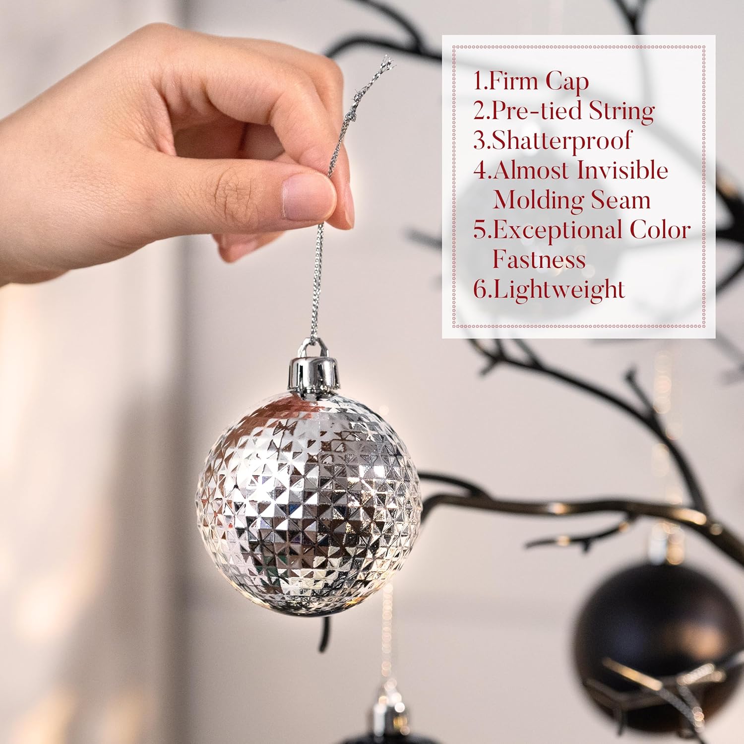 - 【Shatterproof】These Christmas ornament are made of sufficient thickness plastic to prevent breakage. The ornament set remains intact even after falling from 2 meters high onto a hard floor. It is suitable for family