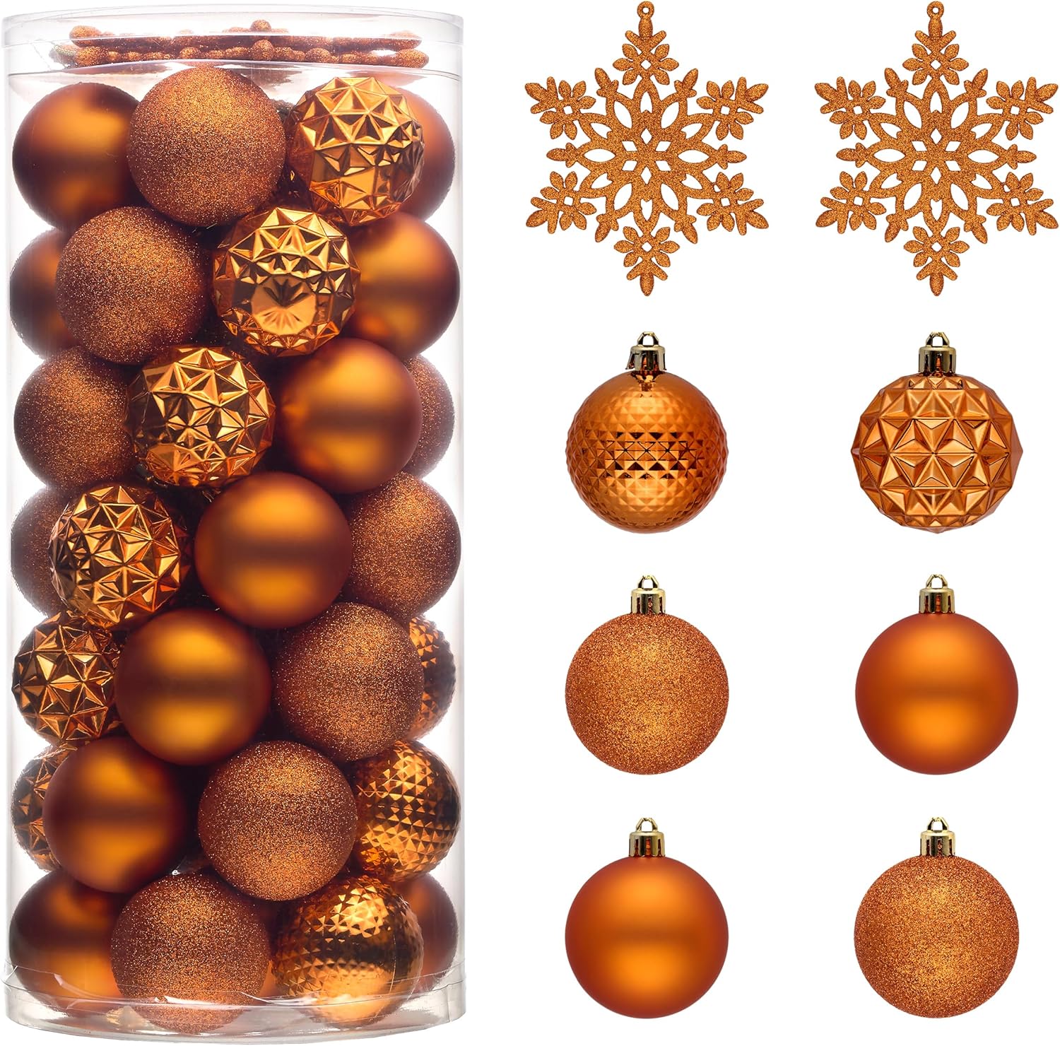 - 【Package and Size】This ornament ball set include 50pcs Christmas ornaments measuring 2.36 inches in diameter, featuring seamless connections for a polished look