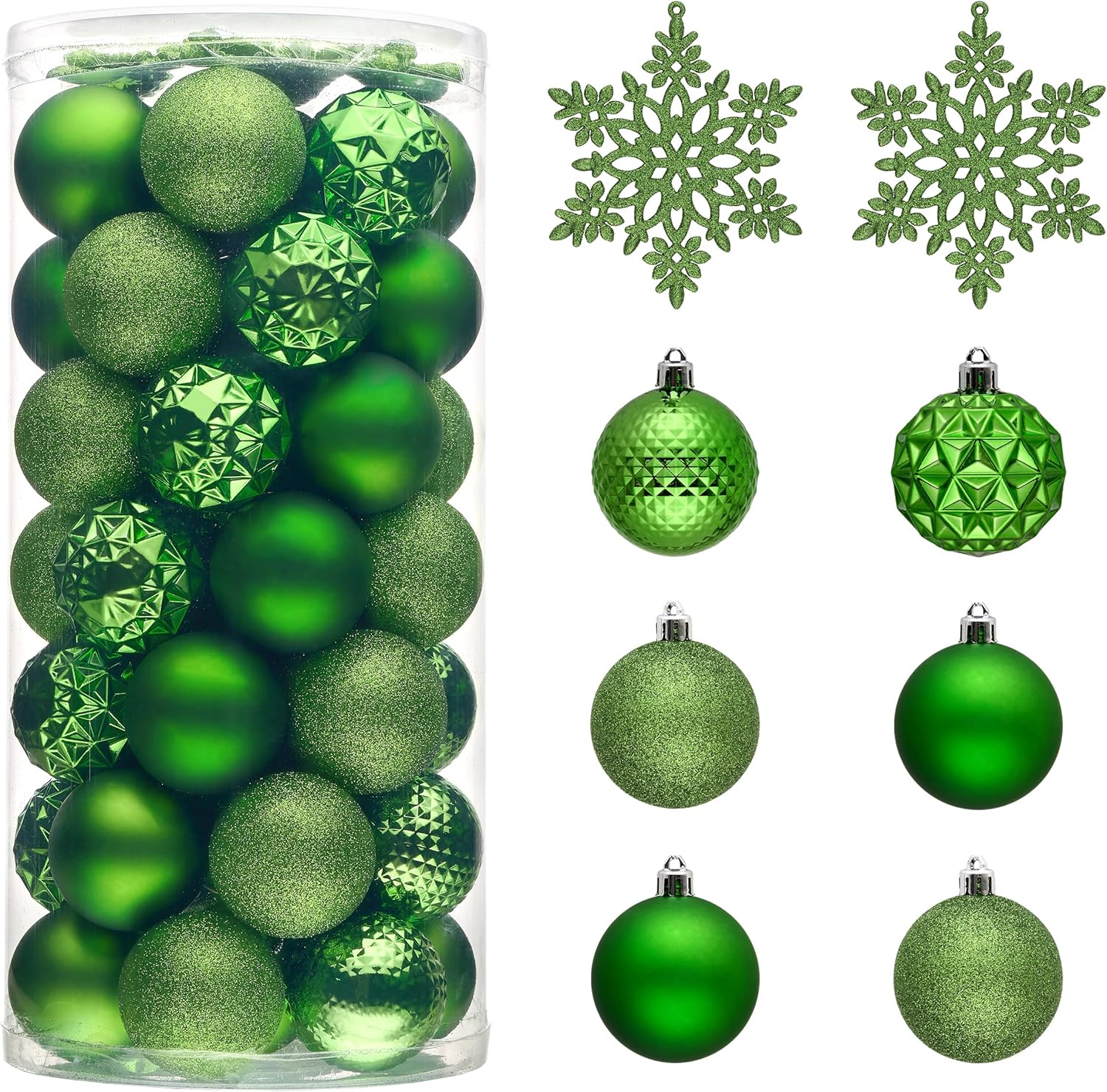 - 【Package and Size】This ornament ball set include 50pcs Christmas ornaments measuring 2.36 inches in diameter, featuring seamless connections for a polished look