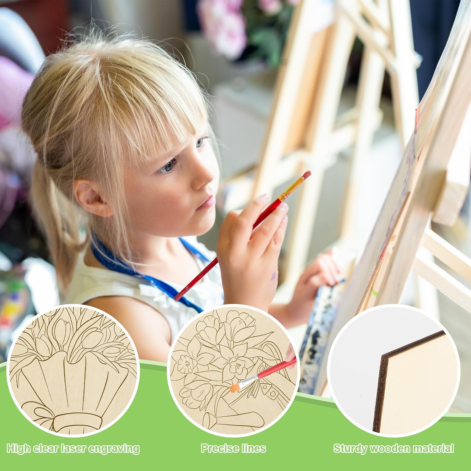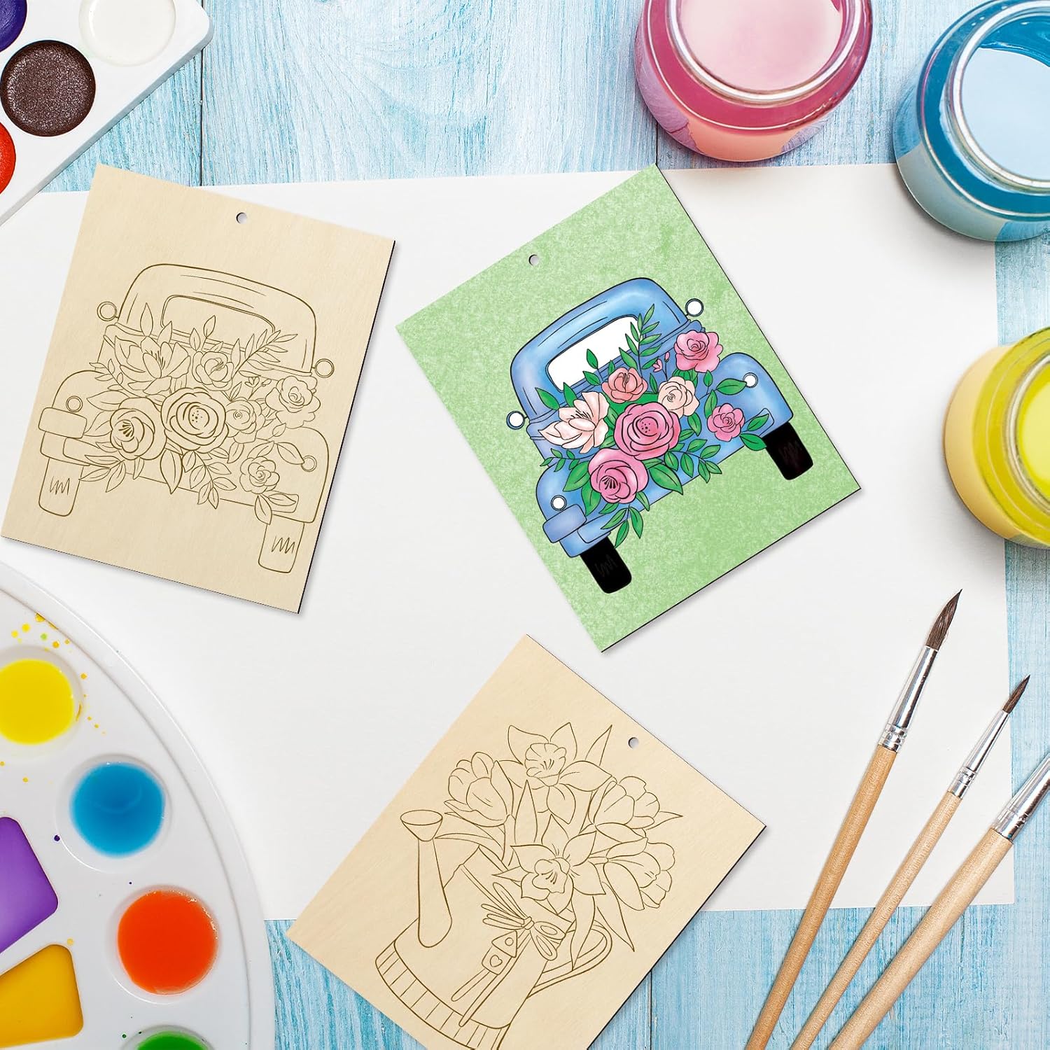 - Large Unique Spring Wooden Crafts To Paint - These unfinished woods come with vibrant elements laser carving line drafts, such as a truck and a bicycle in the spring season, an umbrella with tulips, a watering can, and rain boots. Sufficient quantity, and suitable size for you to use on DIY craft projects, you can also share them with your friends.
