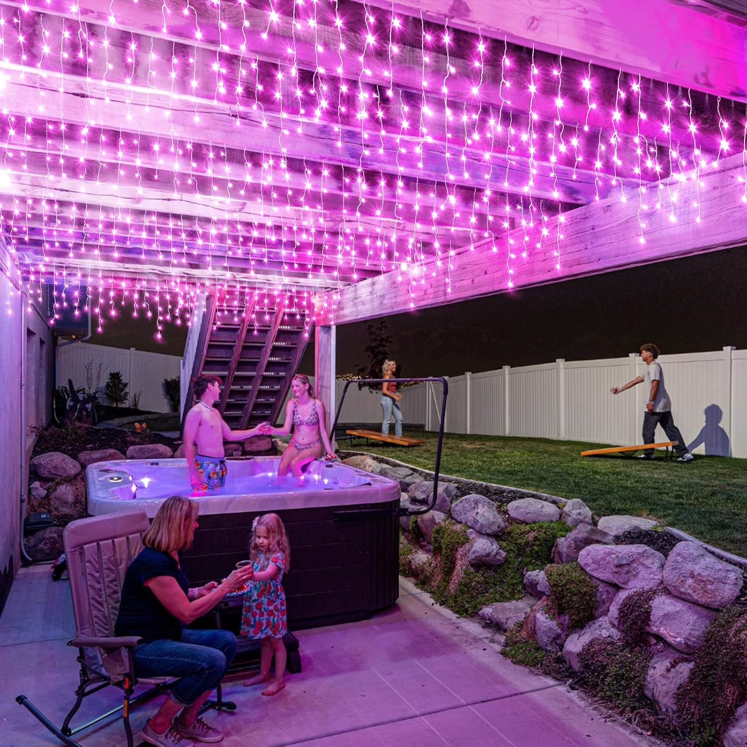 - 🎄 LED Icicle Christmas Lights: 400LED pink Christmas lights totally length is 43ft, including 33ft icicle lights and 10ft extension cord. The outdoor Christmas lights can be connected up to 3 sets to decorate larger areas, suitable for use throughout the year - birthdays, anniversaries, Christmas decoration. The connectable icicle lights can be controlled by one button on the power adapter. Hang these fairy string lights outdoor indoor to create warm and romantic atmosphere for you.