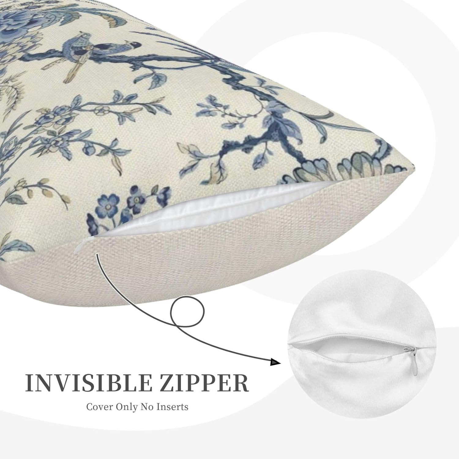 - 【Lumbar Pillow Covers Size】 Chinoiserie flower birds pillow case set includes 2 pcs of farmhouse couch pillow covers (NO Pillow). Home decor farmhouse pillow covers measures 12x20 inch/ 30x50 cm. All the dragonfly floral decor throw pillow covers have a hidden zipper. It is easy to insert or remove the pillow core to replace the spring pillowcase. Easy to clean and wash, durable and not easy to damage.