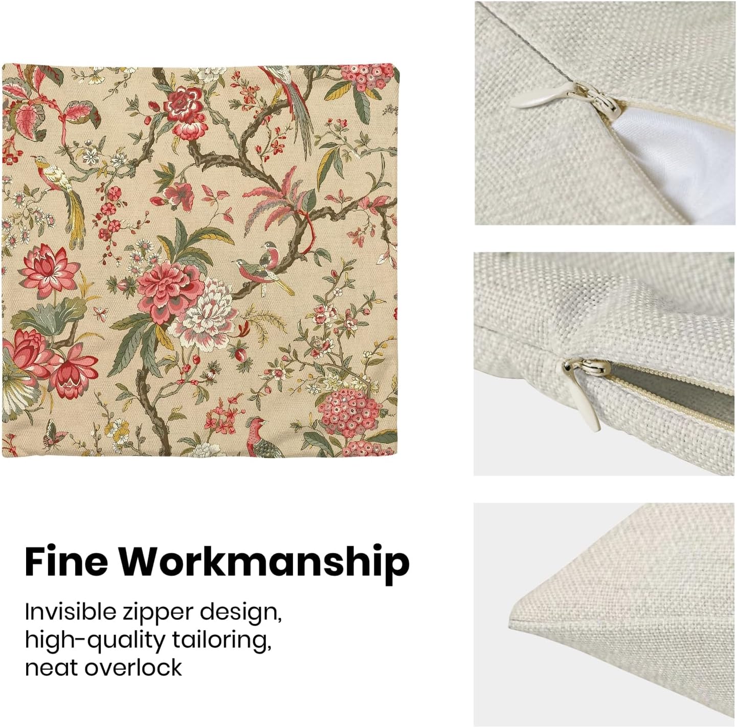 - 【Spring Pillow Covers】 Our Chinoiserie floral throw pillow covers 18x18 inch are made of excellent breathable polyester cotton fabric. The pink red floral decorative pillow covers is durable, soft and skin-friendly. The plant outdoor pillow covers adopt exquisite edging technology and four sides of our floral pillow covers are sewn firmly, which is not easy to open the line.